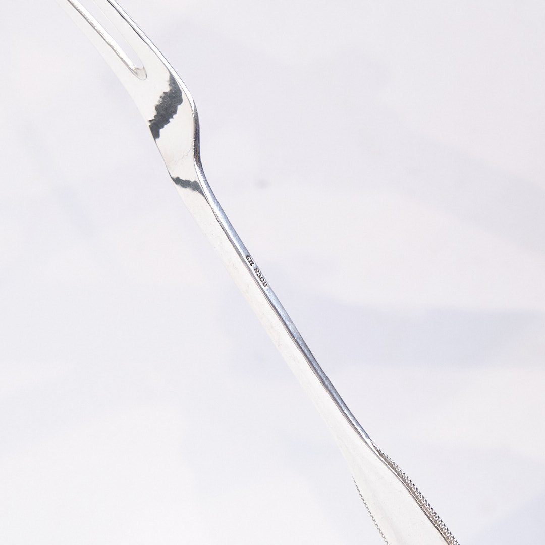 Stegegaffel i mønster nr. 14 af Evald Nielsen. Tretårnet sølv, stemplet. Dansk sølvarbejde med tidløst design.