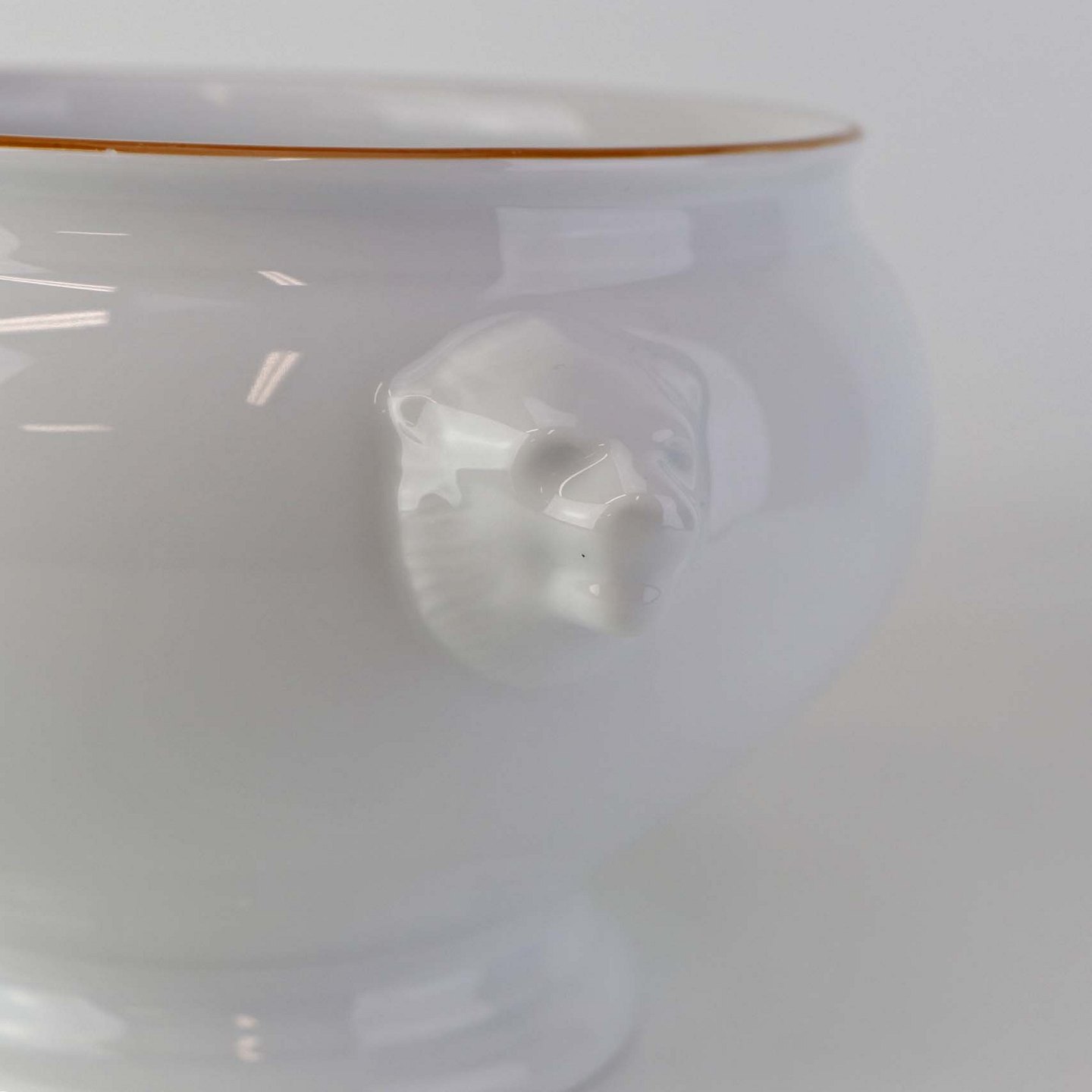 Fremstår med med et mindre nøk i topkantens glasur.