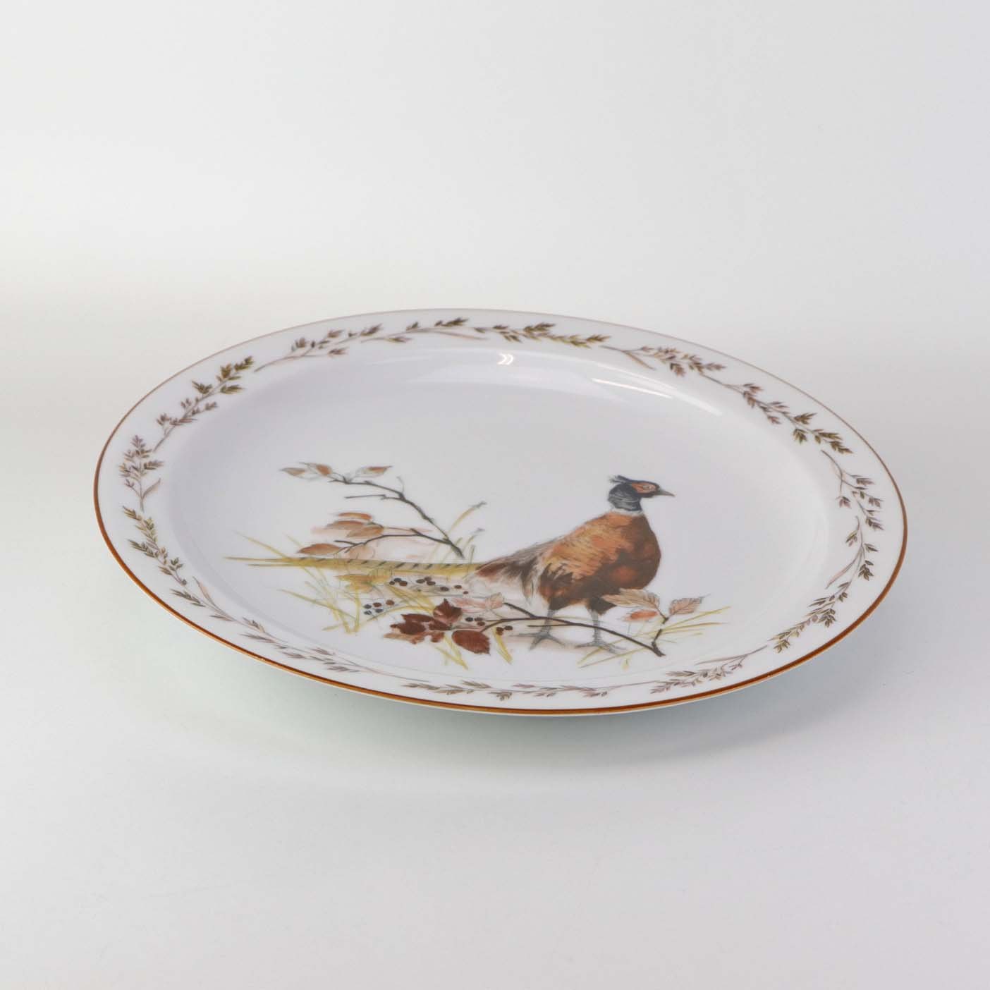 Flad middagstallerken i porcelæn med motiv af en fasan fra stellet Jagtstel.