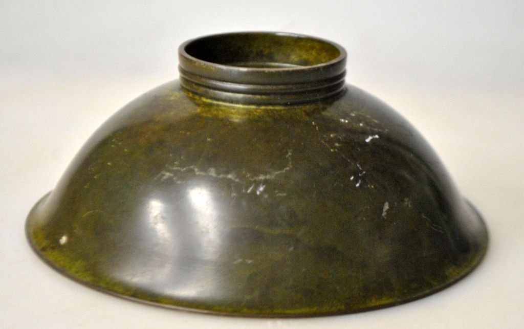Lille dansk patineret bronzeskål, art deco, ca. 1930. På lille standrand. Stemplet: Ægte ildfast Bronze. H.: 5 cm. Dia.: 12,5 cm.