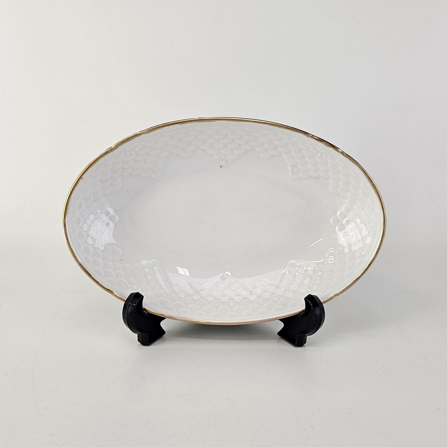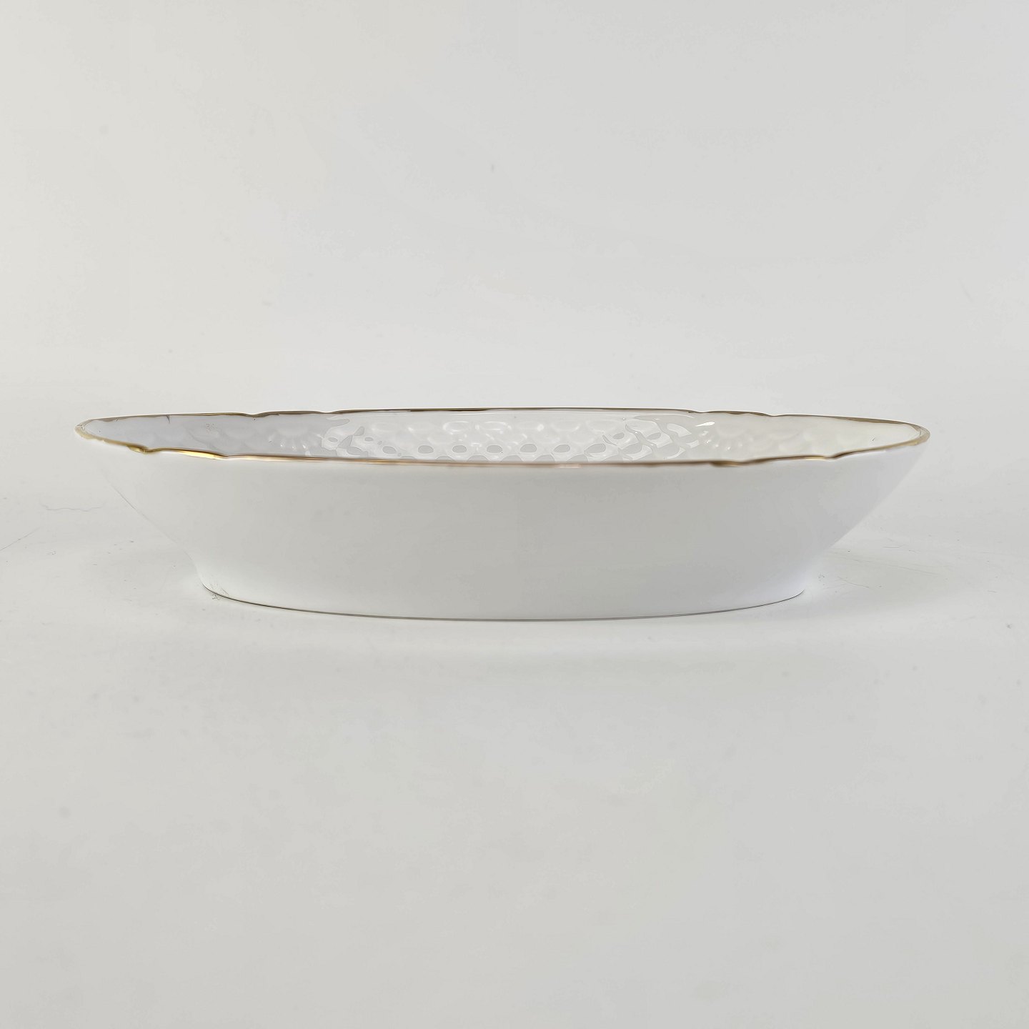 Hostrup er hvidt porcelæn i skælform med guldkant