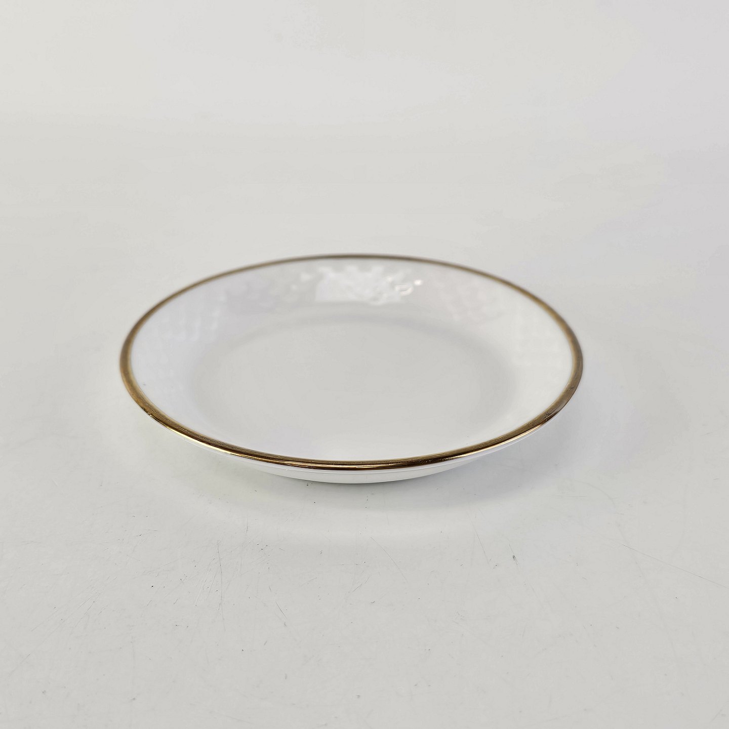 Hostrup er hvidt porcelæn i skælform med guldkant