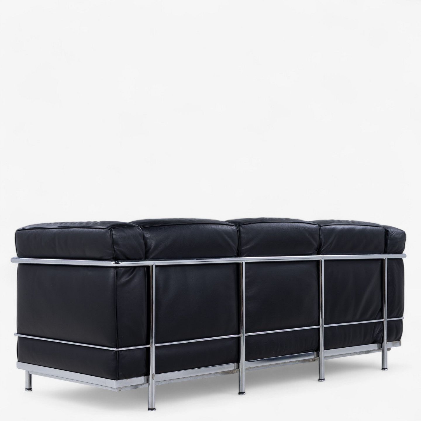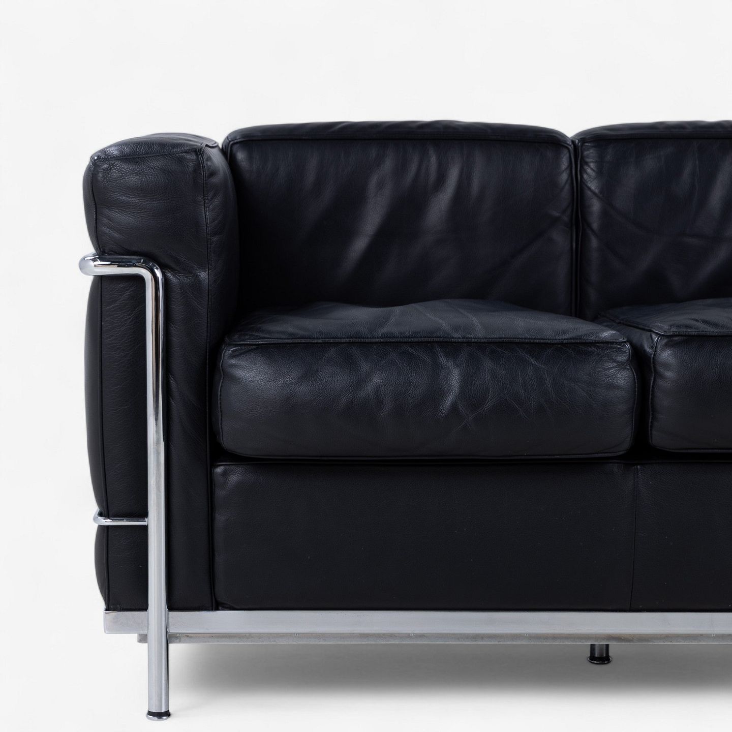 LC 2/3 - 3. pers sofa i originalt sort læder med stel i stål. Stemplet fra producent.