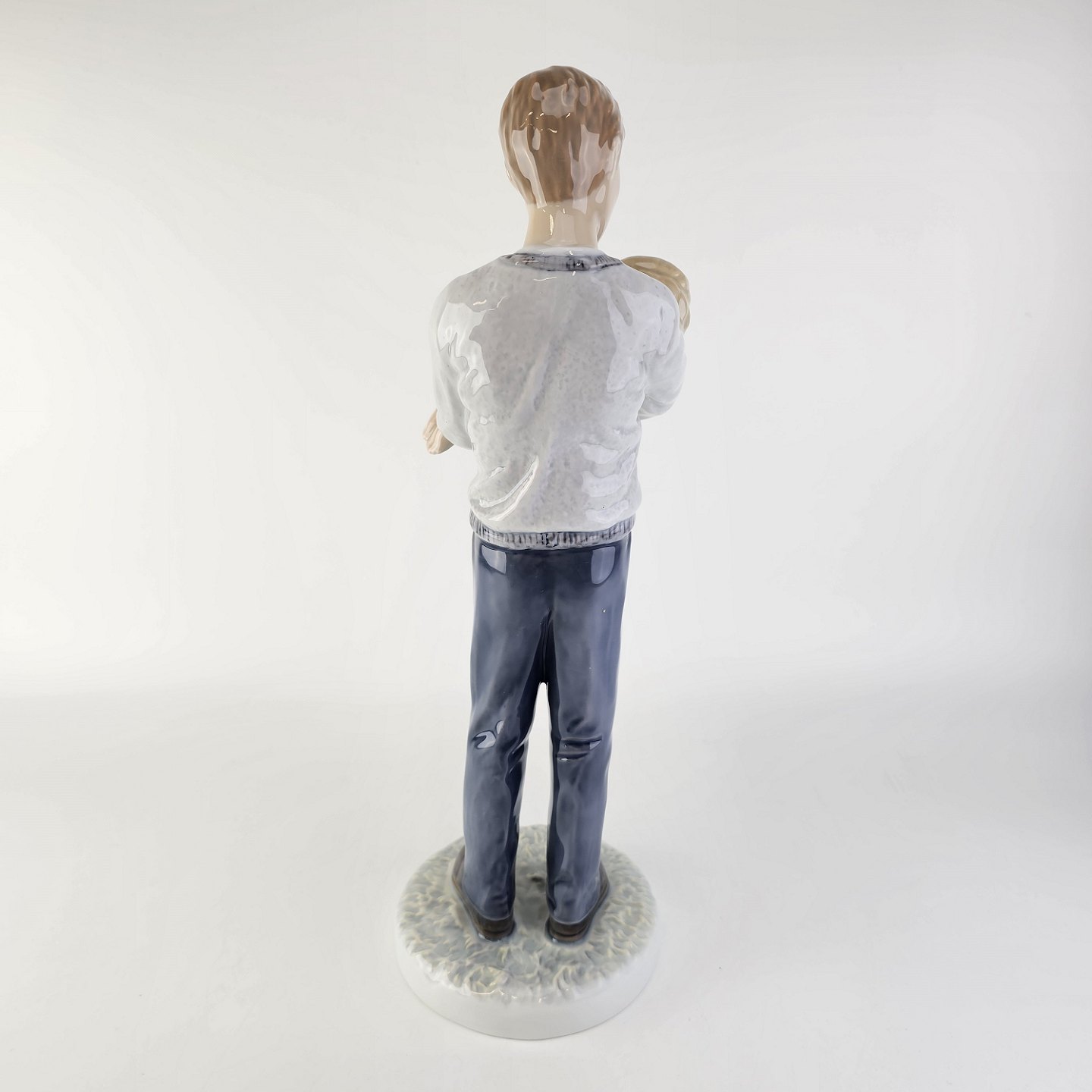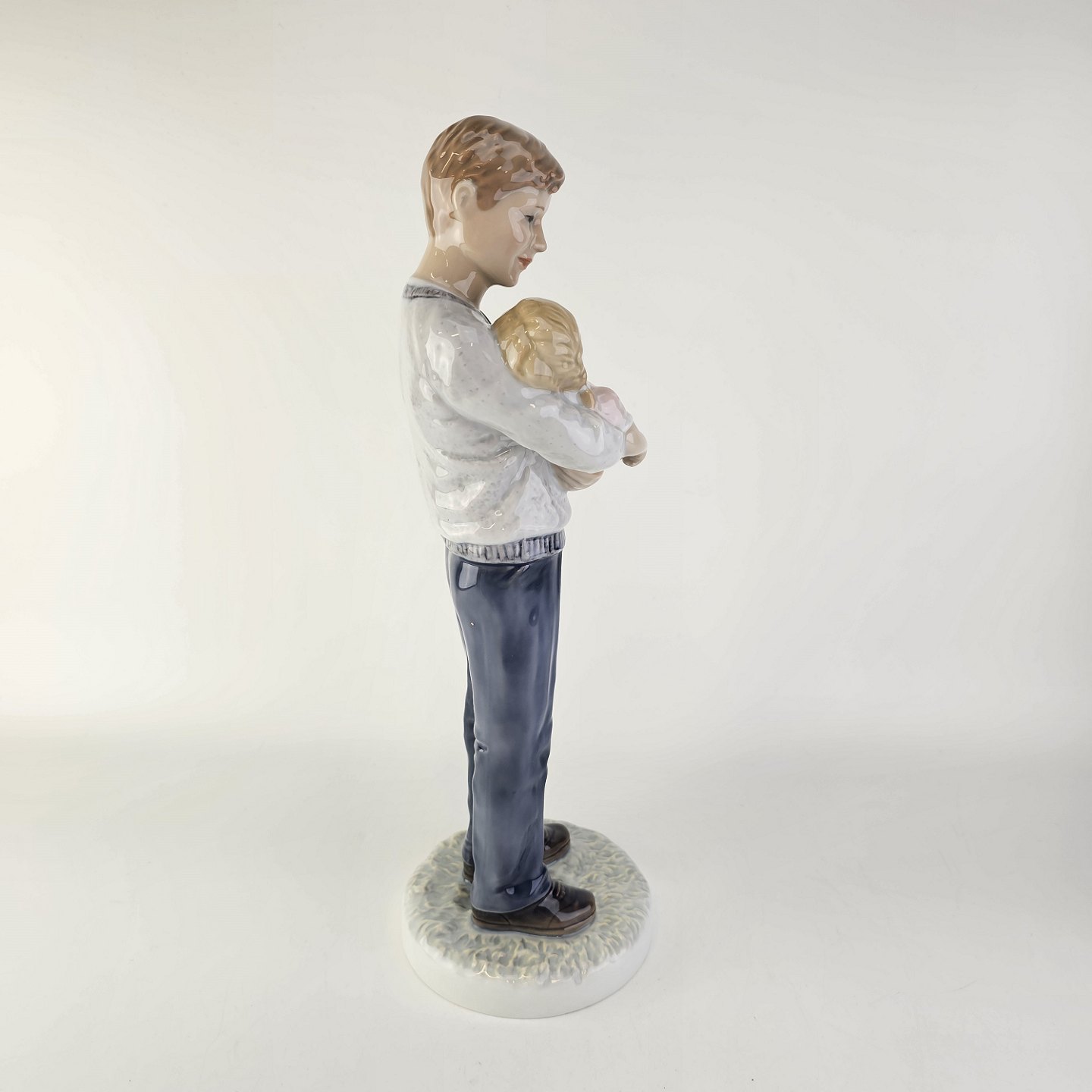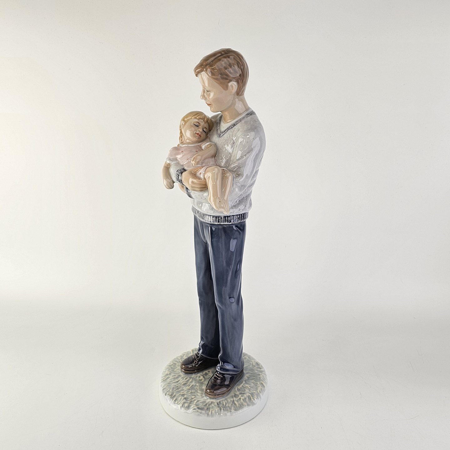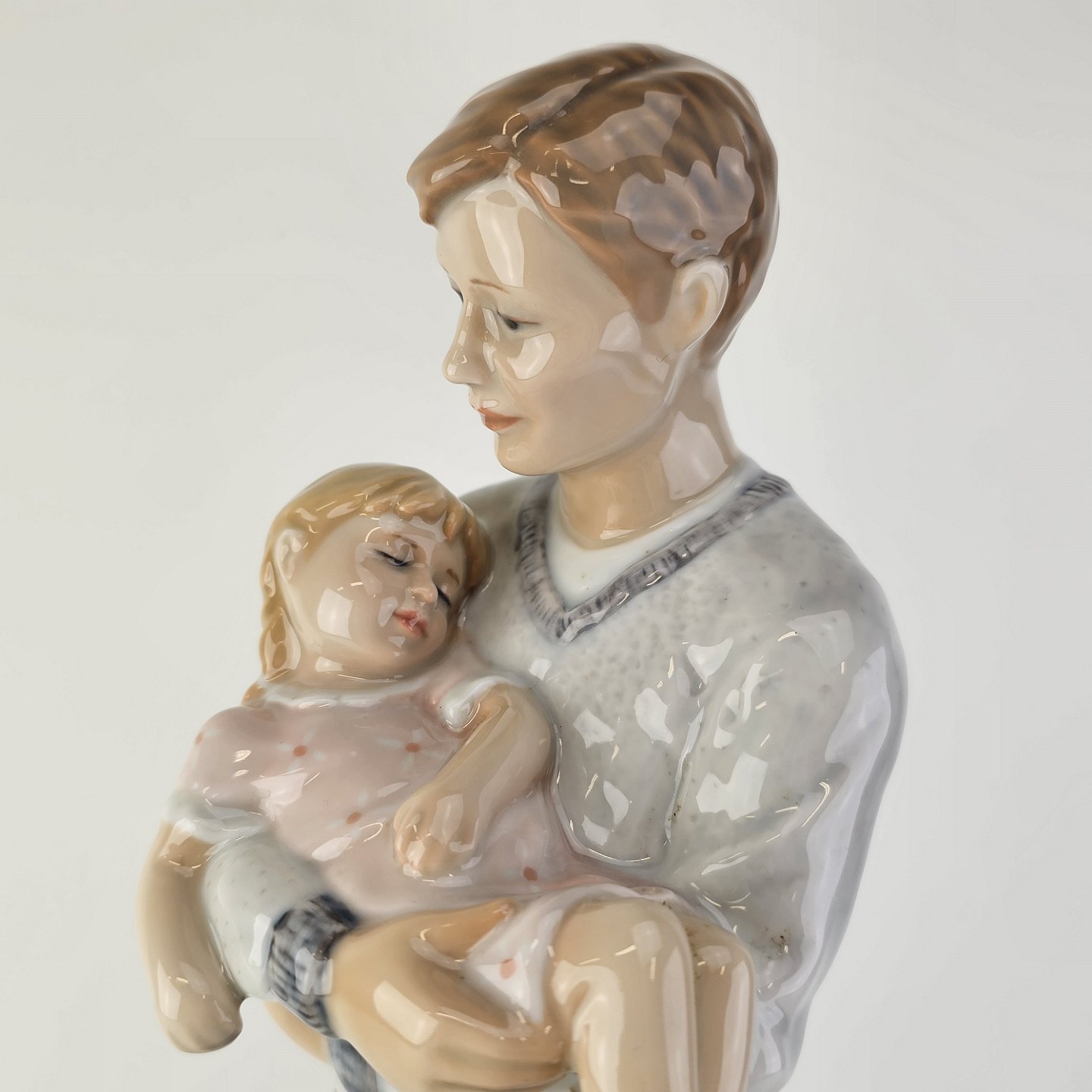 Kongelig figur i porcelæn med motiv af en far som står med en sovende pige i armene