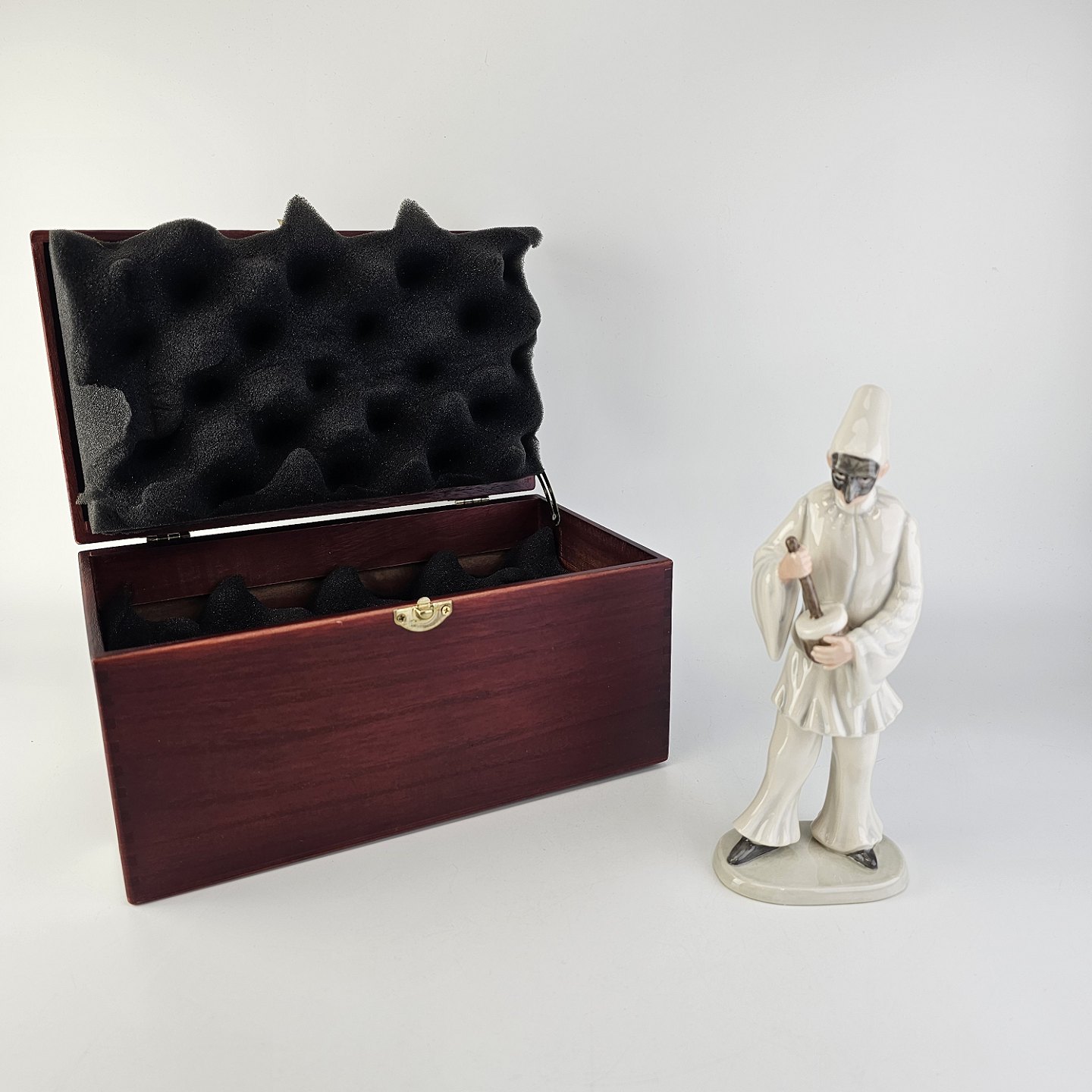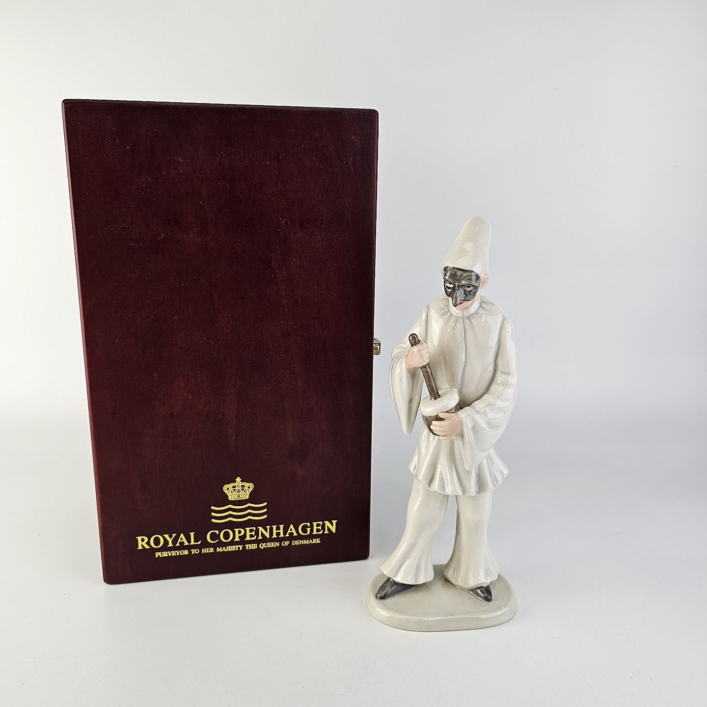 Figur i porcelæn med motiv af Pulcinella fra La Commedia dell'Arte Italiana