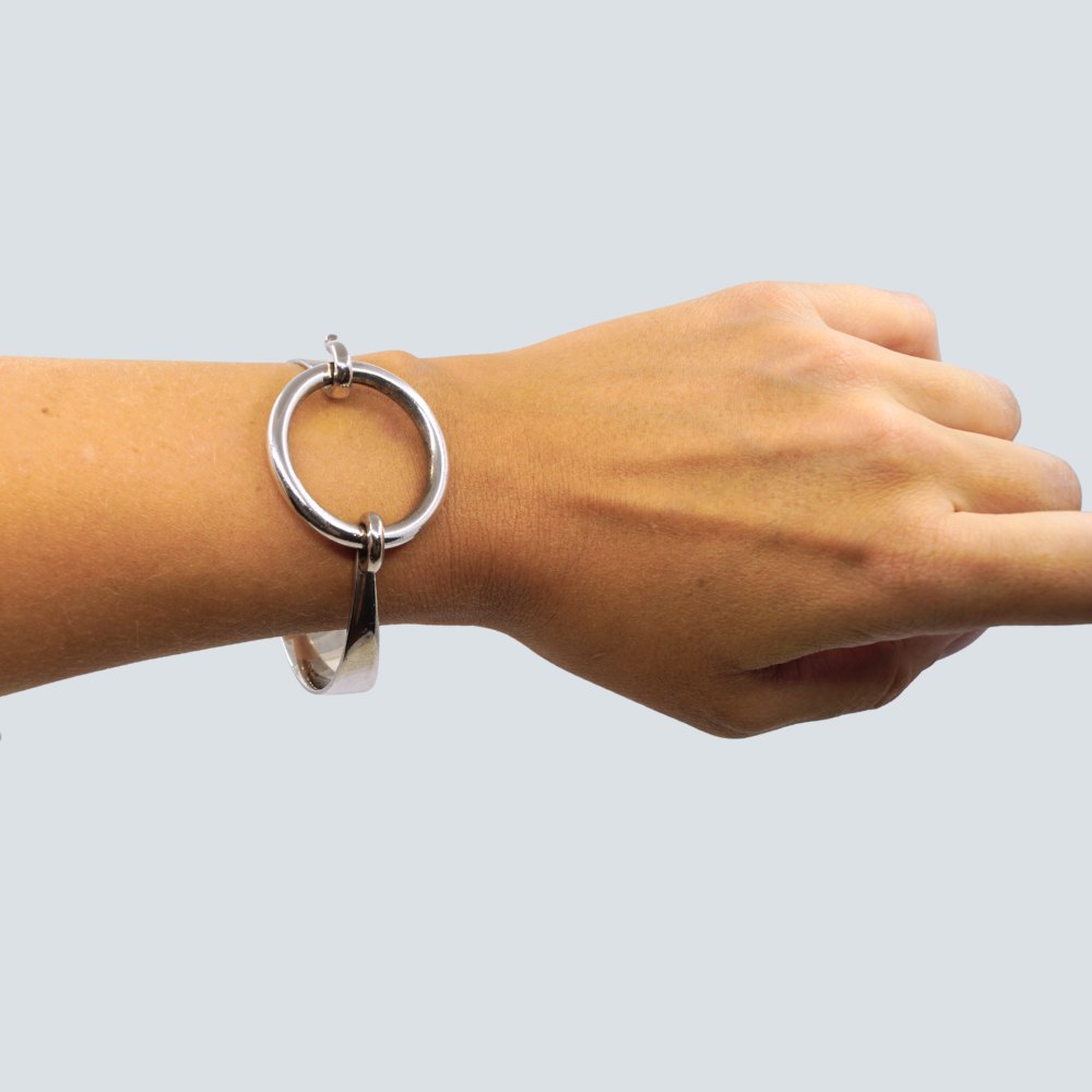 Hans Hansen; Armring af sterling sølv. Med cirkel formet lås foran.