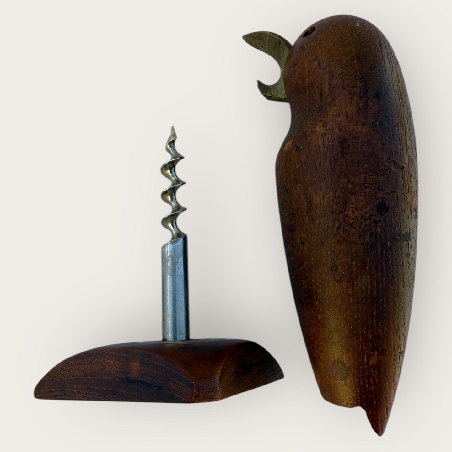 Øloplukker og proptrækker i teaktræ fra 1960'erne, pæn stand, Mål: 12,5x7,5cm