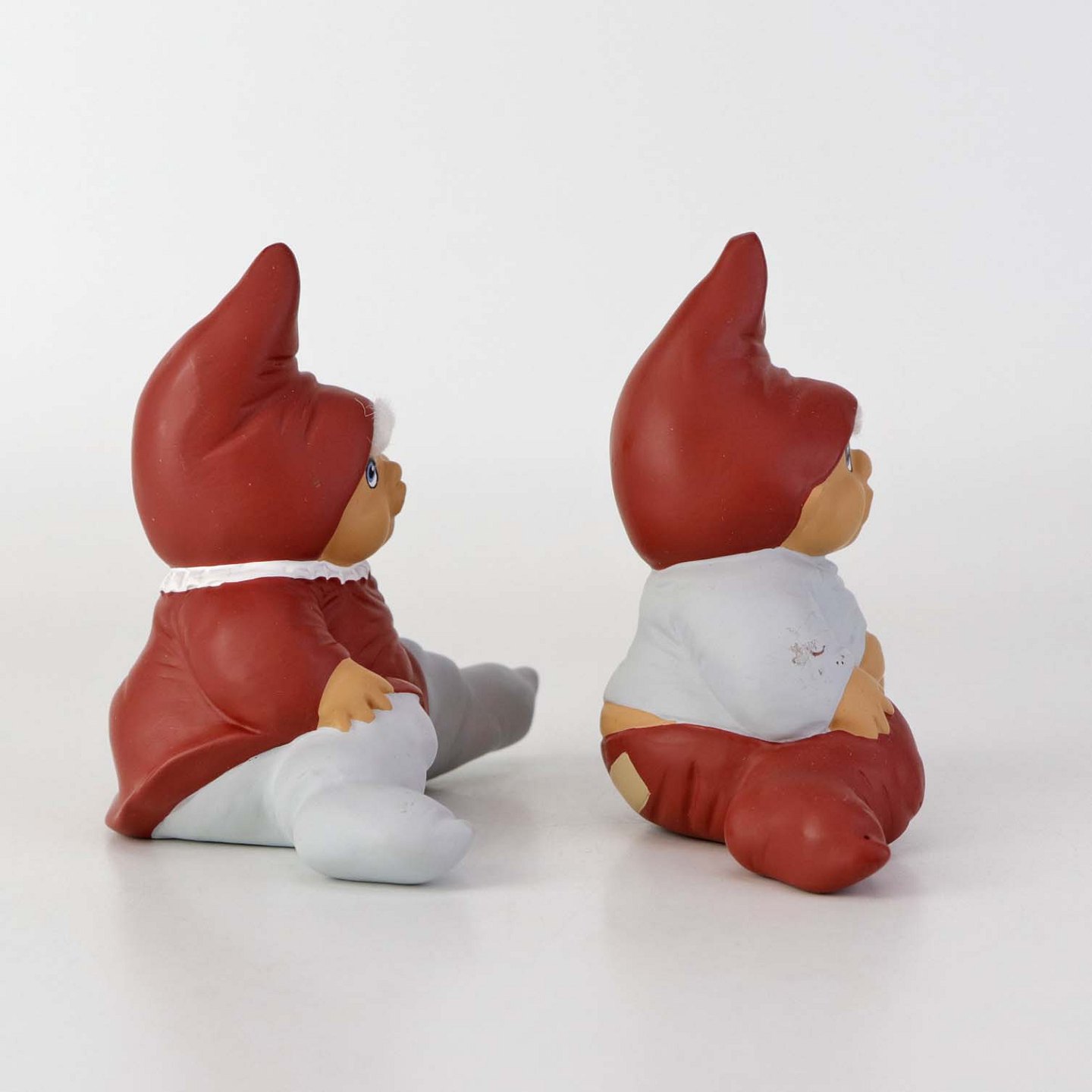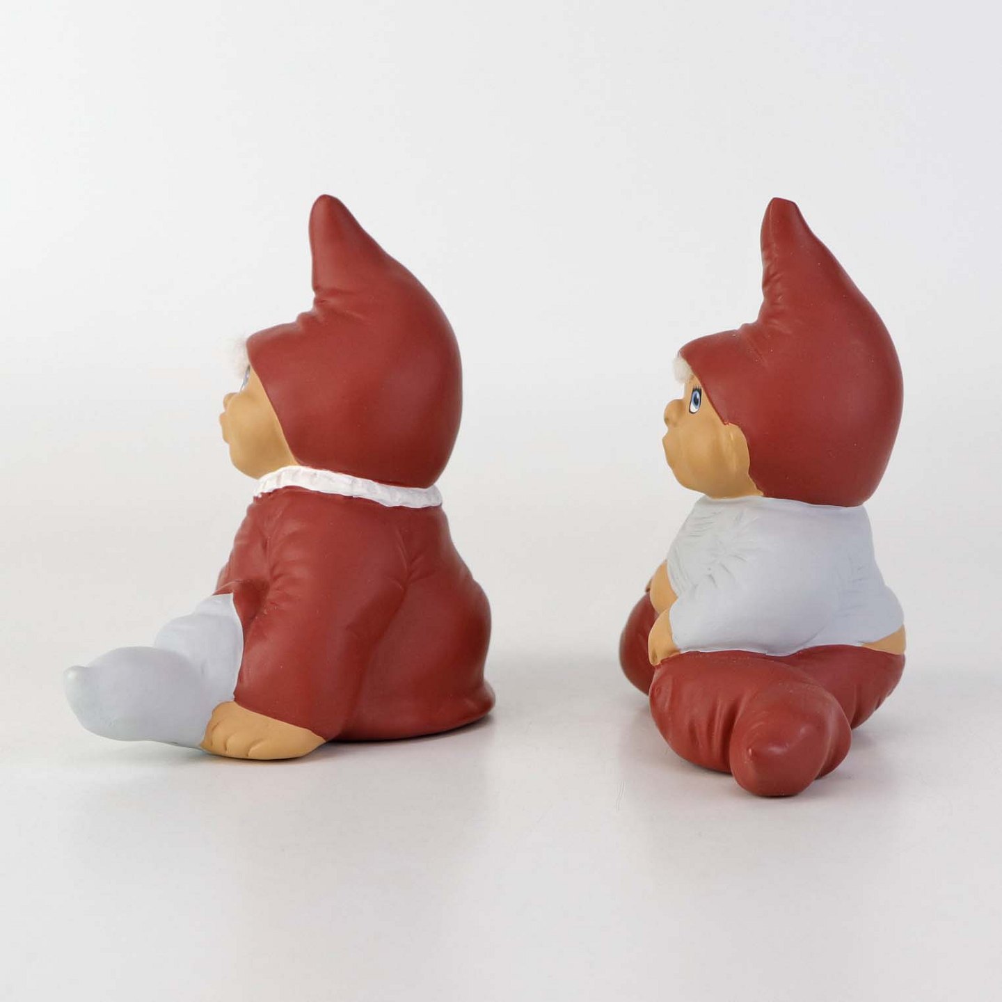 Figursæt med motiv af nisserne Simone og Albert med tilhørende fyrfadsstage fra serien Klarborg jul år 2021. Figurene kommer med original boks.