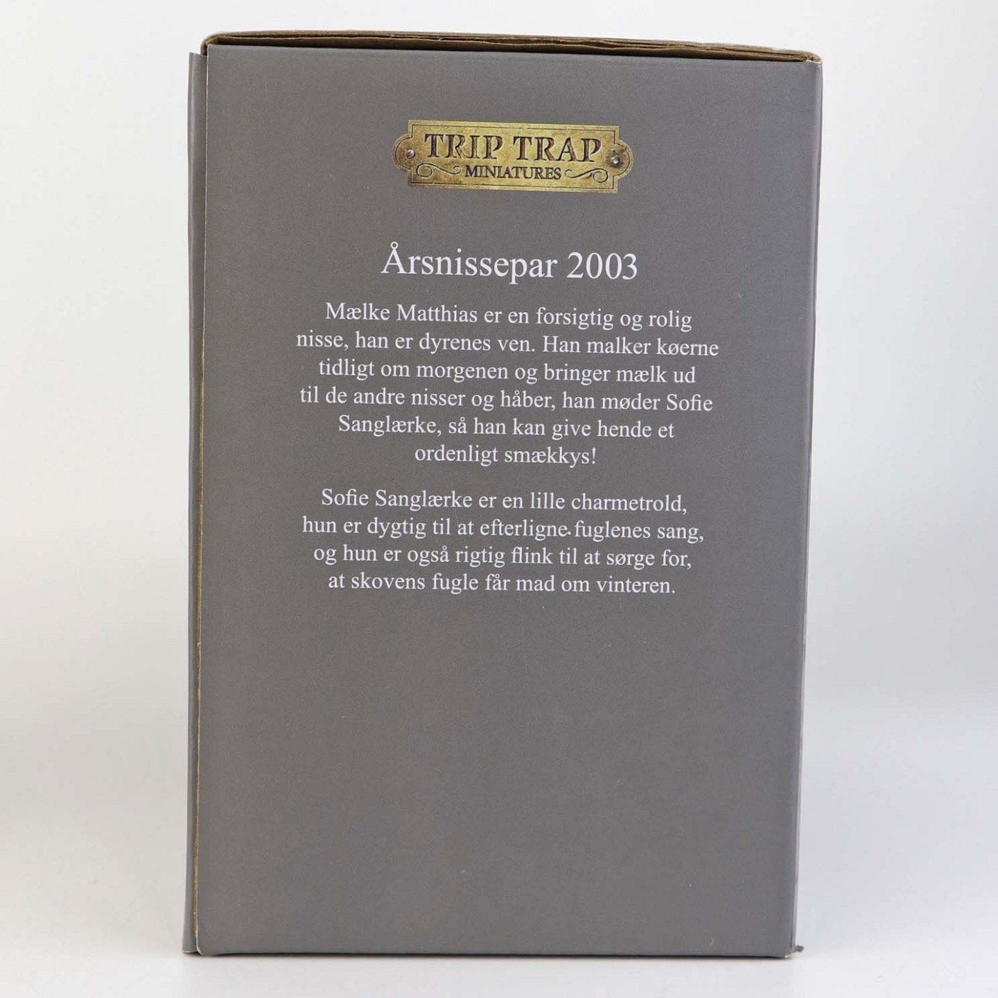 Figursæt med motiv Mathias og Sofie, som er årsnissepar fra år 2003 fra serien Klarborg jul. Figurene kommer med original boks.