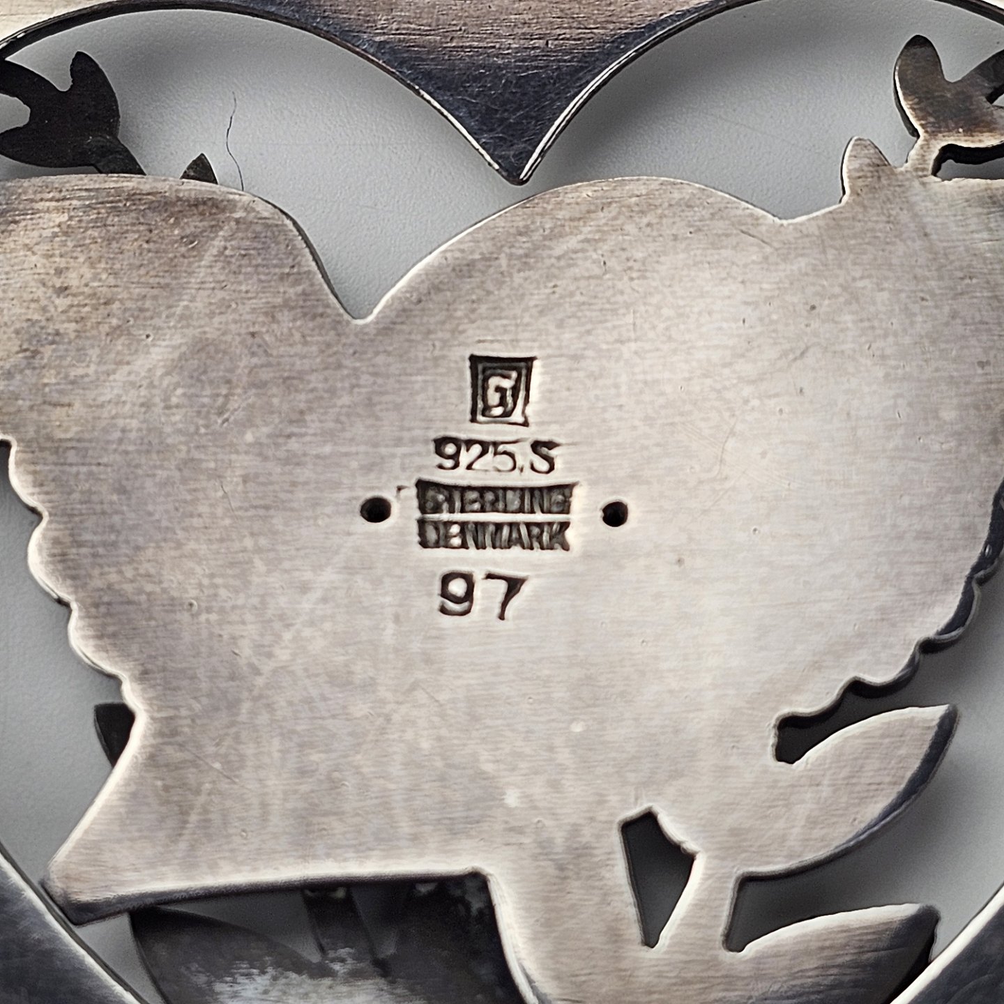 Vedhæng i sterling sølv med motiv af en fugl og to kviste