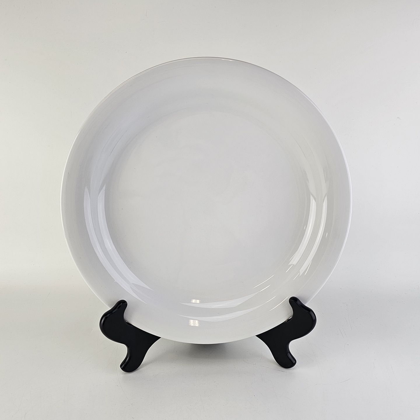 Flad middagstallerken i hvidt porcelæn fra stellet Essence