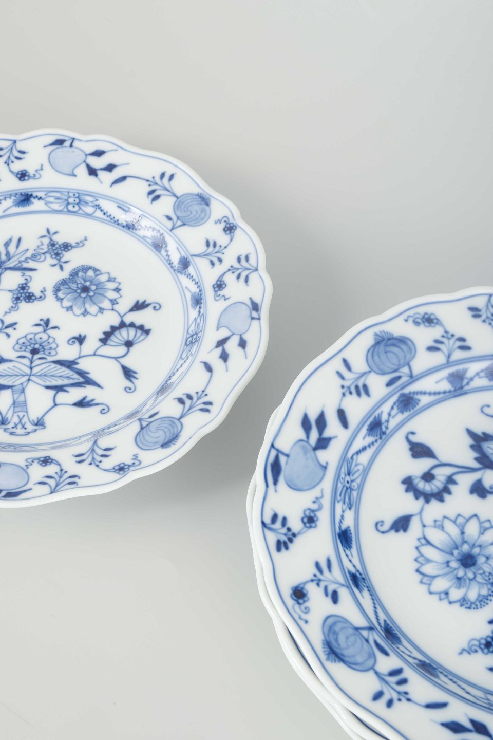“Løgmønstret” er et af Meissens mest ikoniske mønstre, udviklet i midten af 1700-tallet og inspireret af asiatisk porcelæn. Dekorationen, der oprindeligt skulle gengive granatæbler og ferskner, blev senere opfattet som løg – deraf navnet. Serien er fortsat blandt Meissens mest populære og klassiske stel.