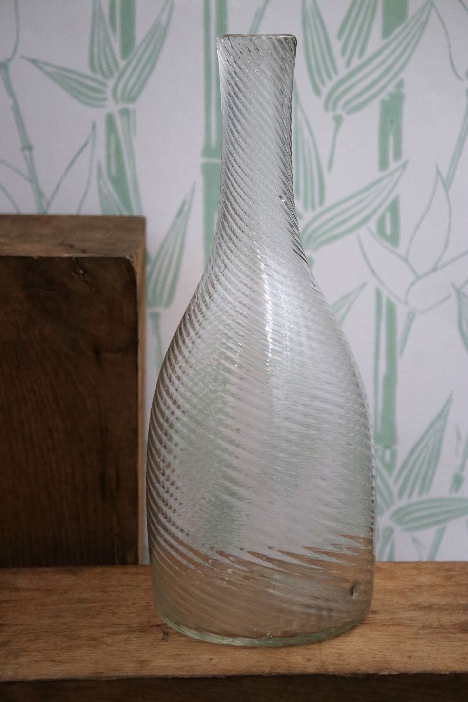 Antik , svensk karaffel i snoet mundblæst glas...