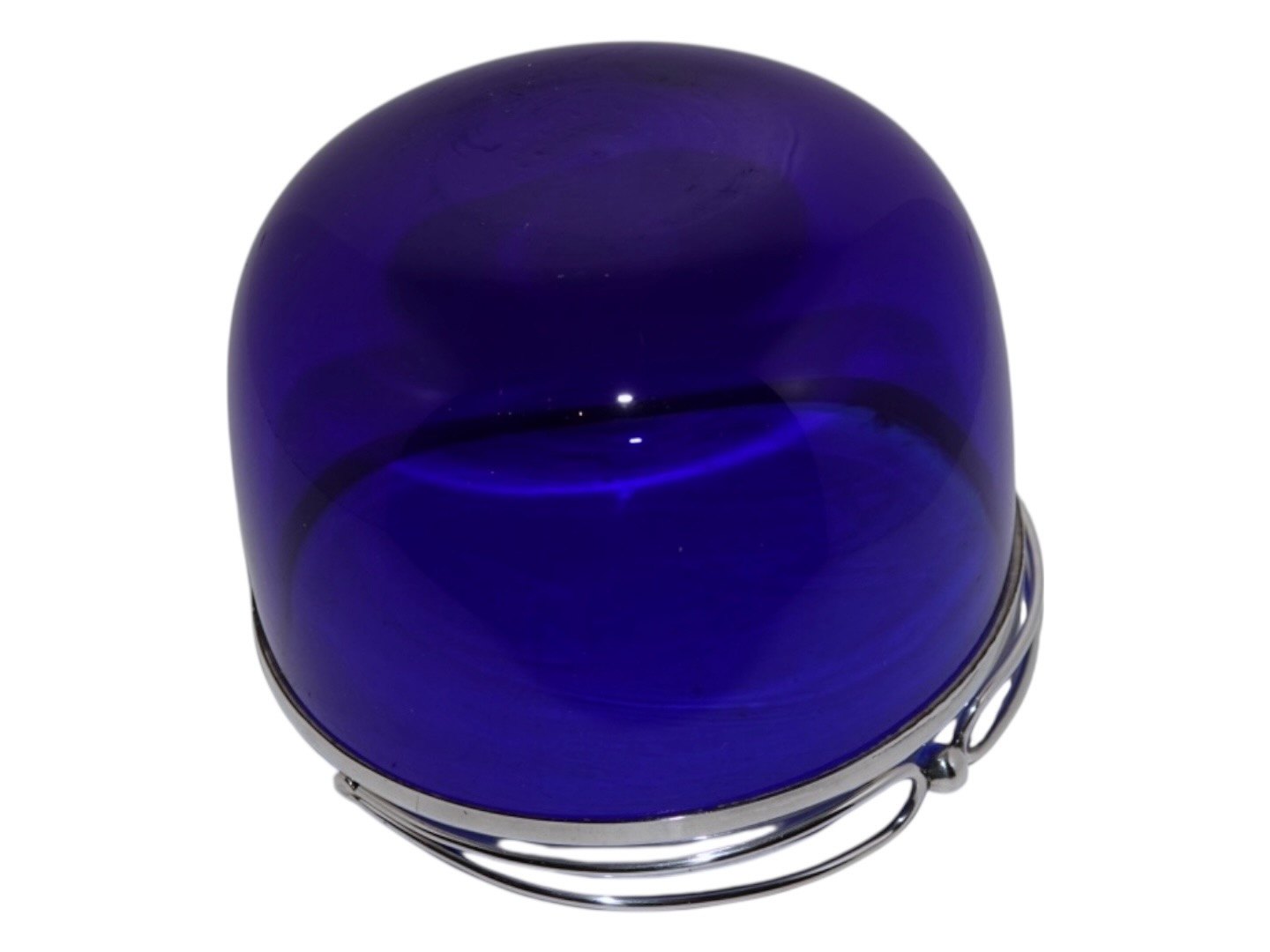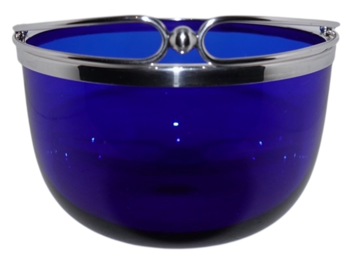 Kandisskål i blåt glas med Svend Toxværd ægte sølvkant og hank