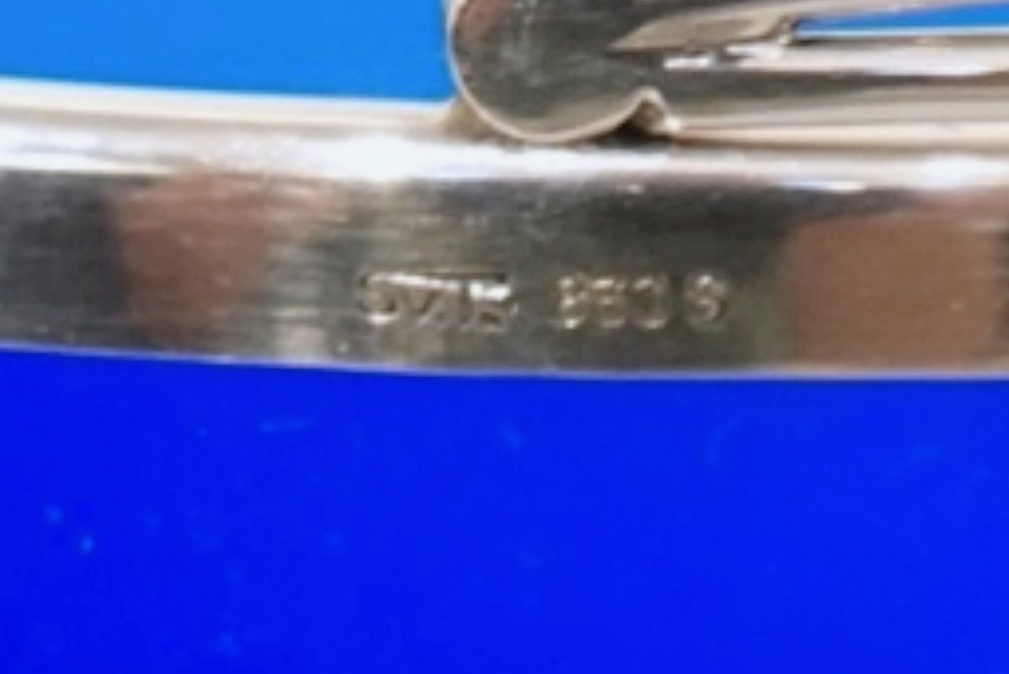Holmegaard, kandisskål (sukkerskål) i blåt glas med Svend Toxværd ægte sølvkant og hank. Den er fra 1950'erne,