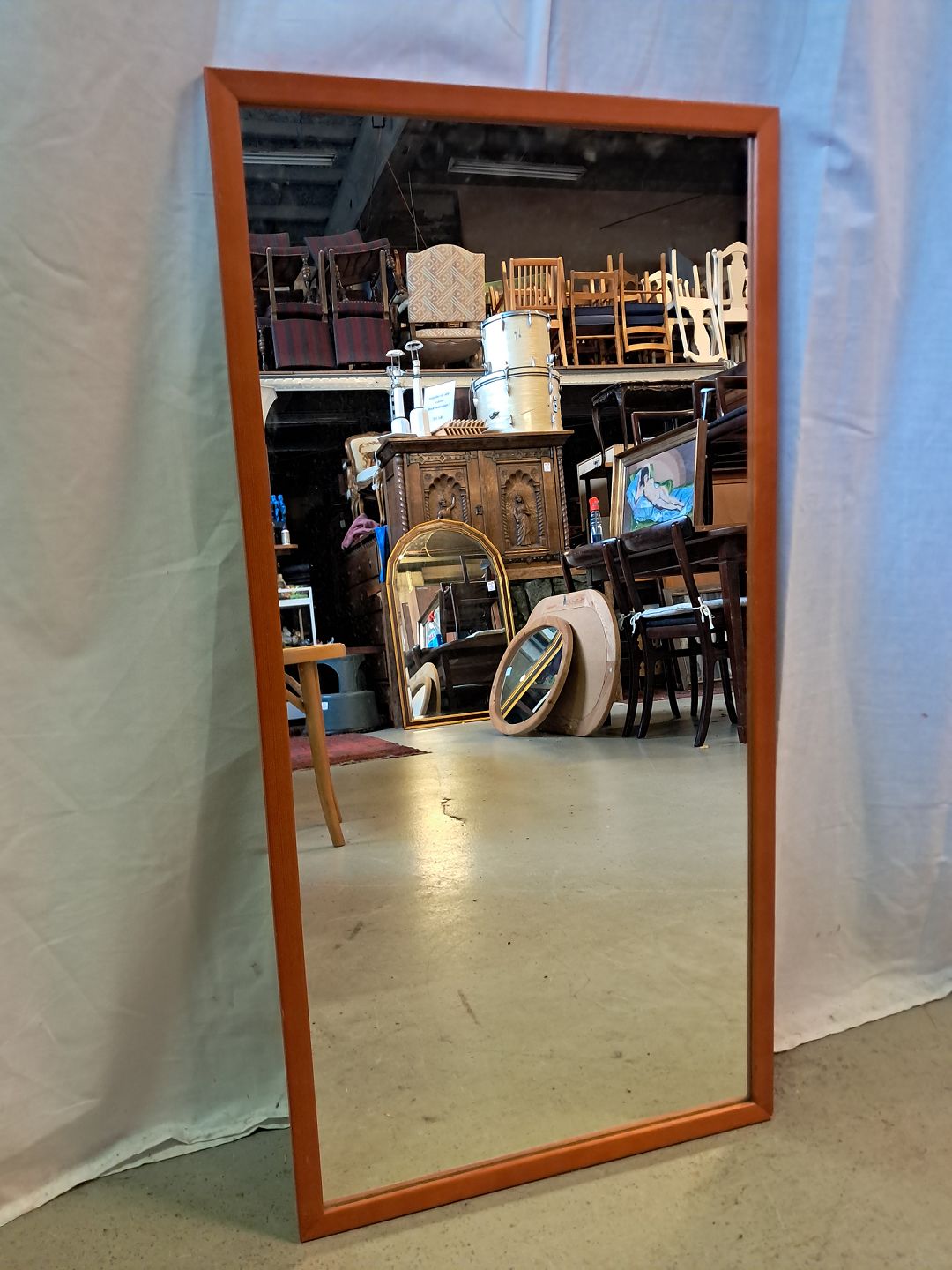 Spejl i massivt og bejdset fyrretræ, fra 1980erne.
