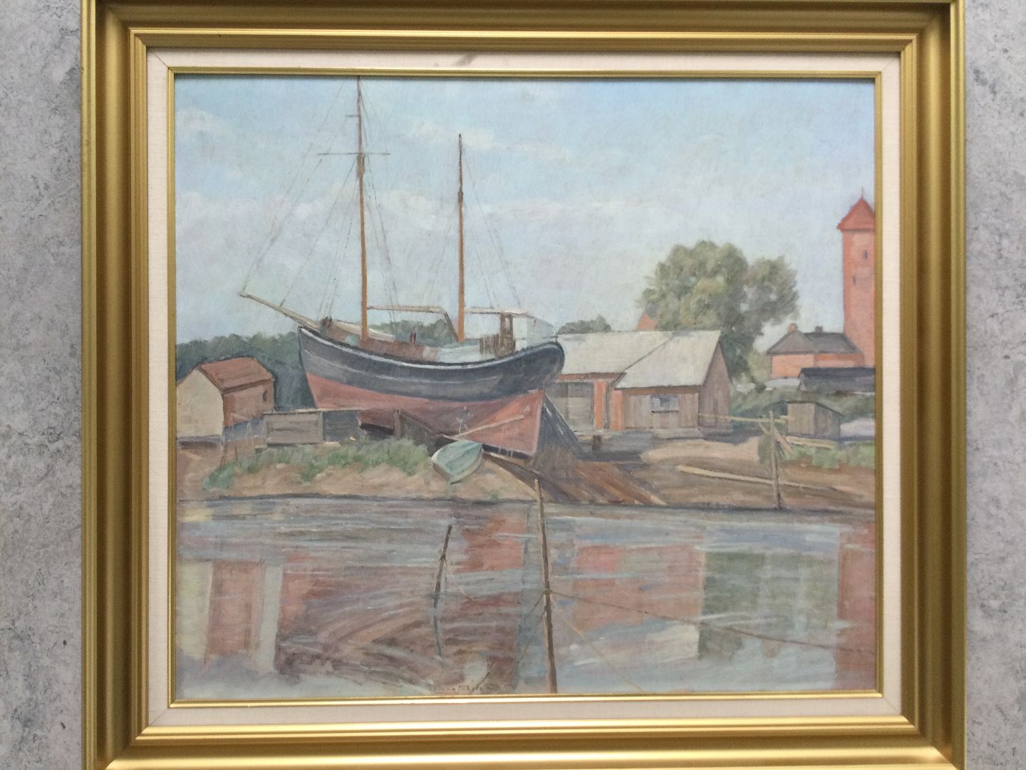 Maleri af Einar Parslev - Havneparti.