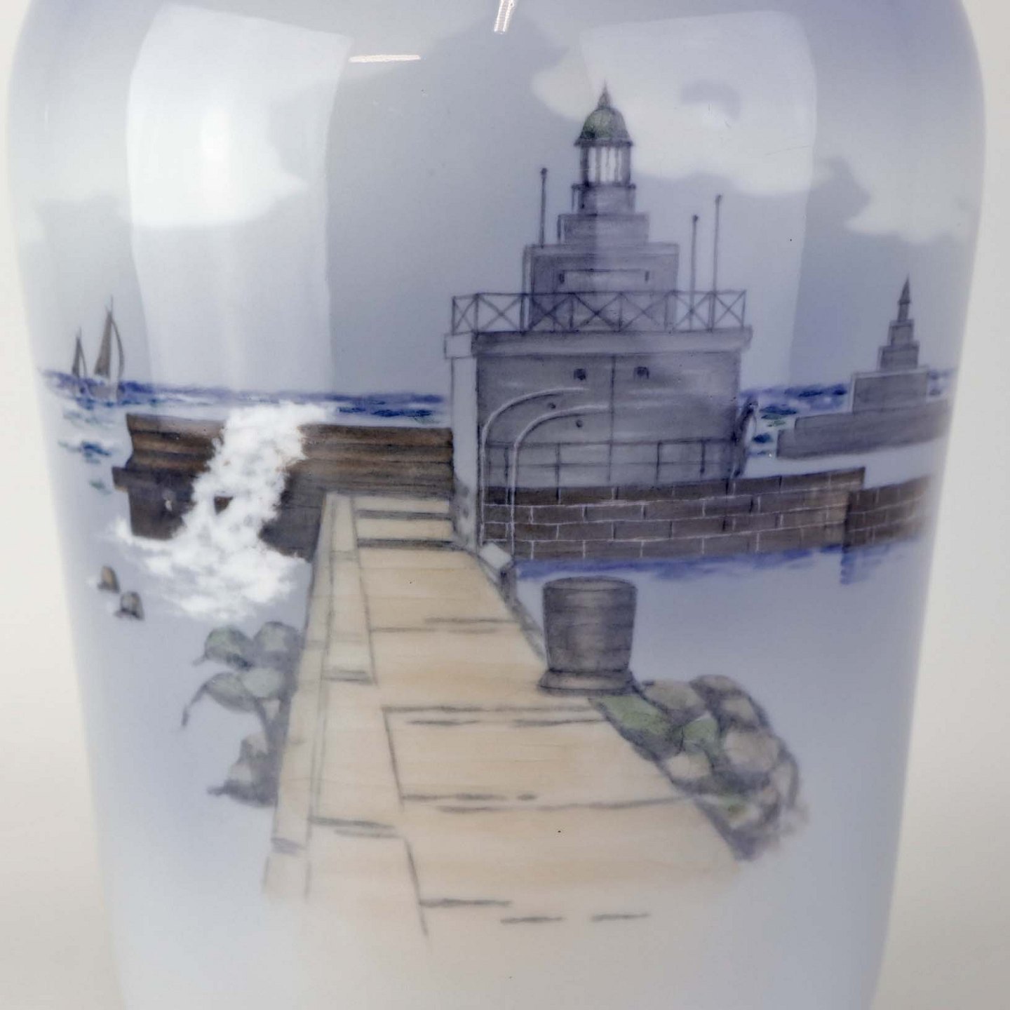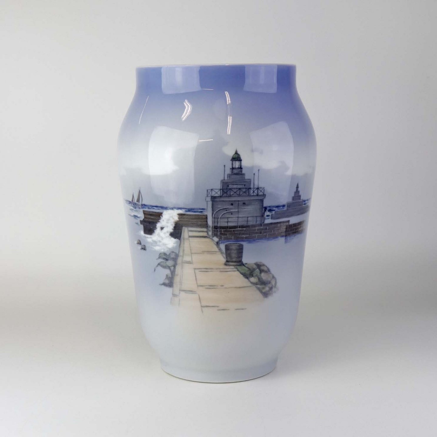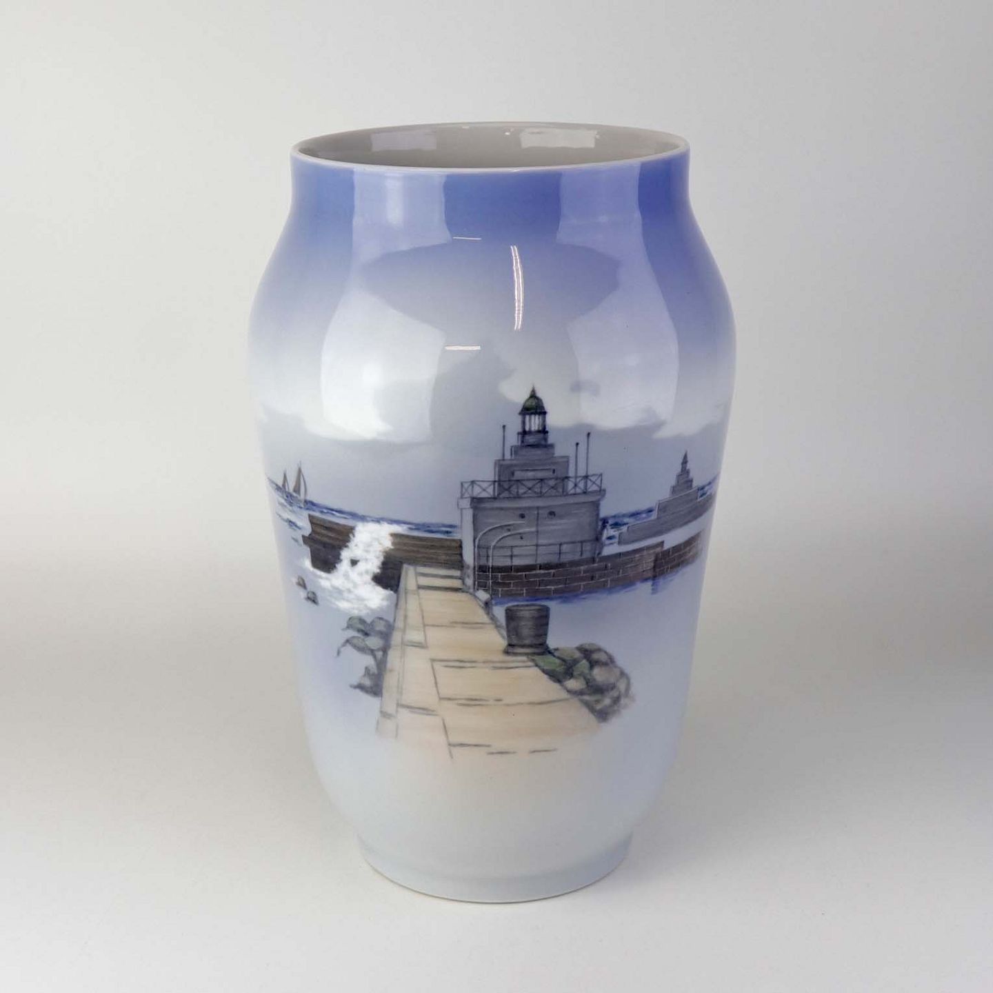 Vase i kongelig porcelæn med motiv af indsejlingen til Københavns havn. Nr. 2860/1217