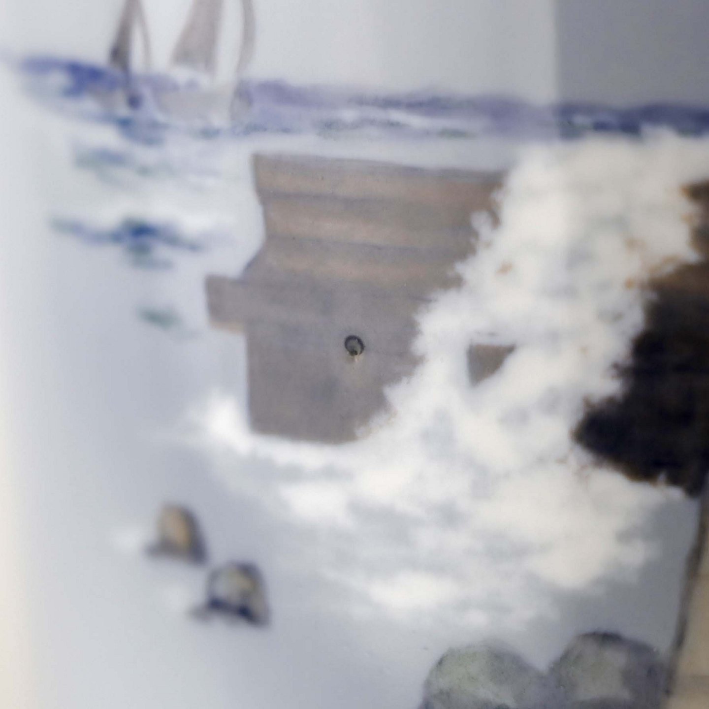 Fremstår med enkelte ridser i glasuren samt et enkelt sted med en uregelmæssighed i forbindelse med støbningen.