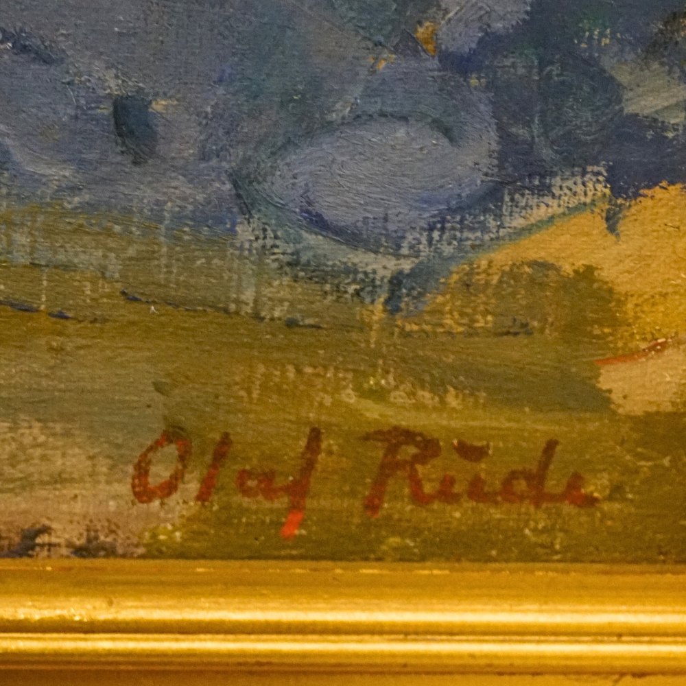 Olaf Rude; Oliemaleri fra Bornholm, Danmark. Signeret "Olaf Rude".