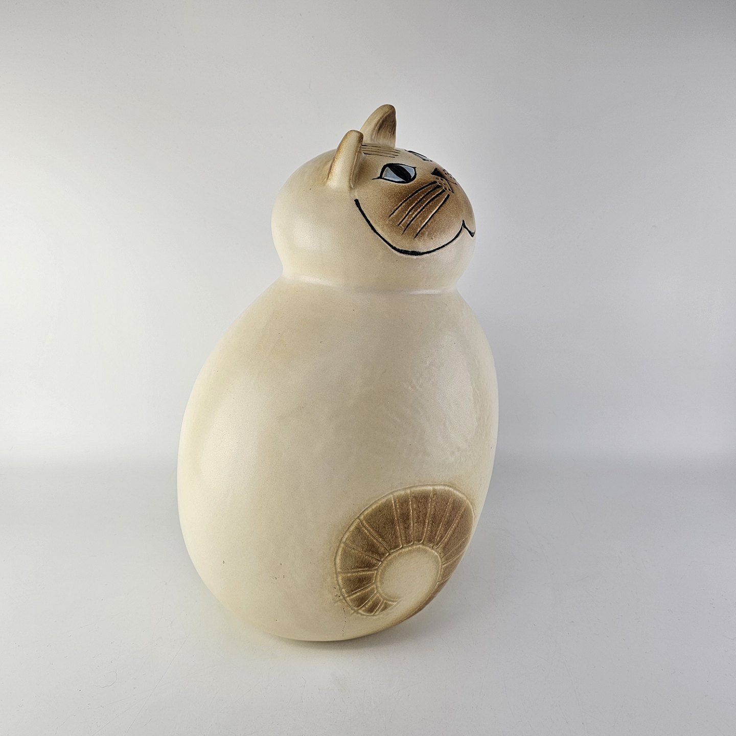 Figur i stentøj med motiv af en lys kat af modellen Mia fra år 2010