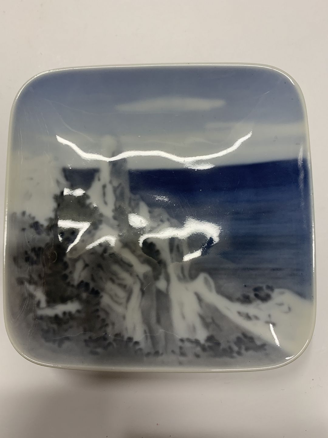 Royal Copenhagen Firkantet asiet (oprindeligt askebæger) Møens Klint Sommerspiret.