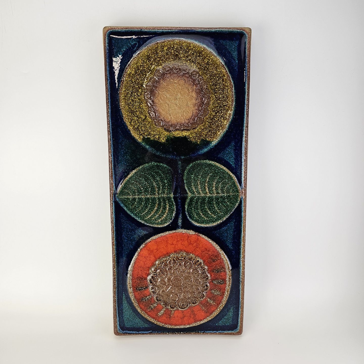 Relief i glaseret højbrændt stentøj med motiv af to blomster