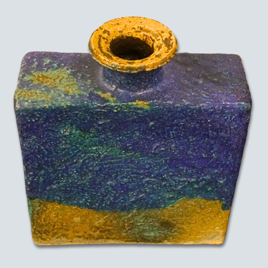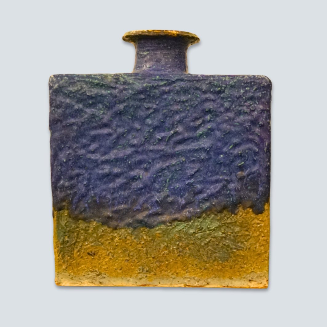 Annikki Hovisaari for Arabia; Firkantet keramik vase med blå glasur. Fra 1970érne.