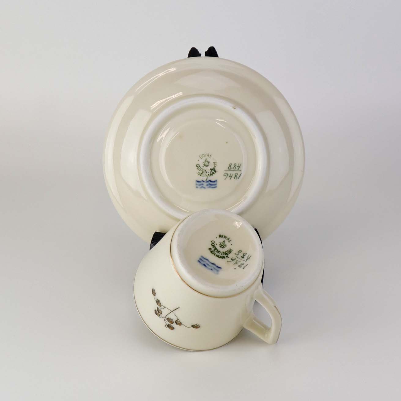 Kop med underkop i kongelig porcelæn fra stellet Hjertegræs. Nr. 884/9481