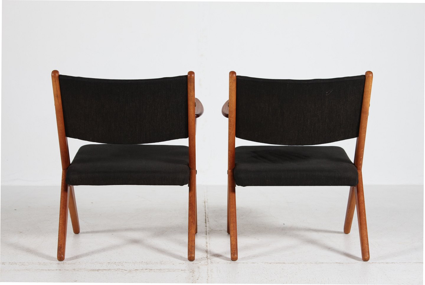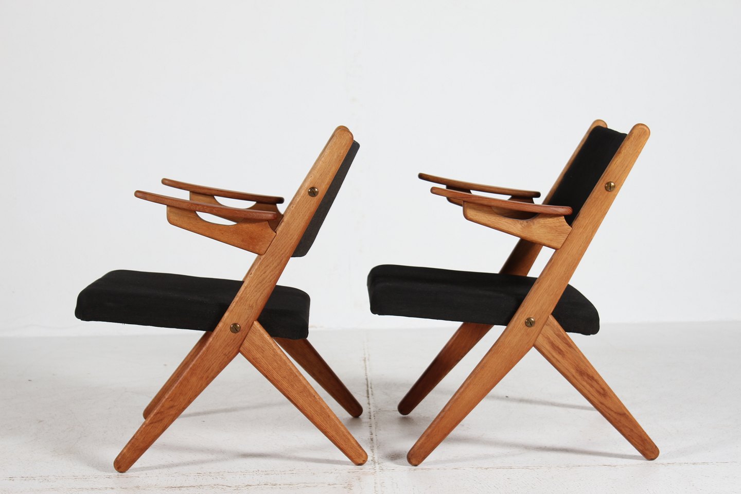 Par easy chairs fra 1960'erne fremstillet af massiv eg