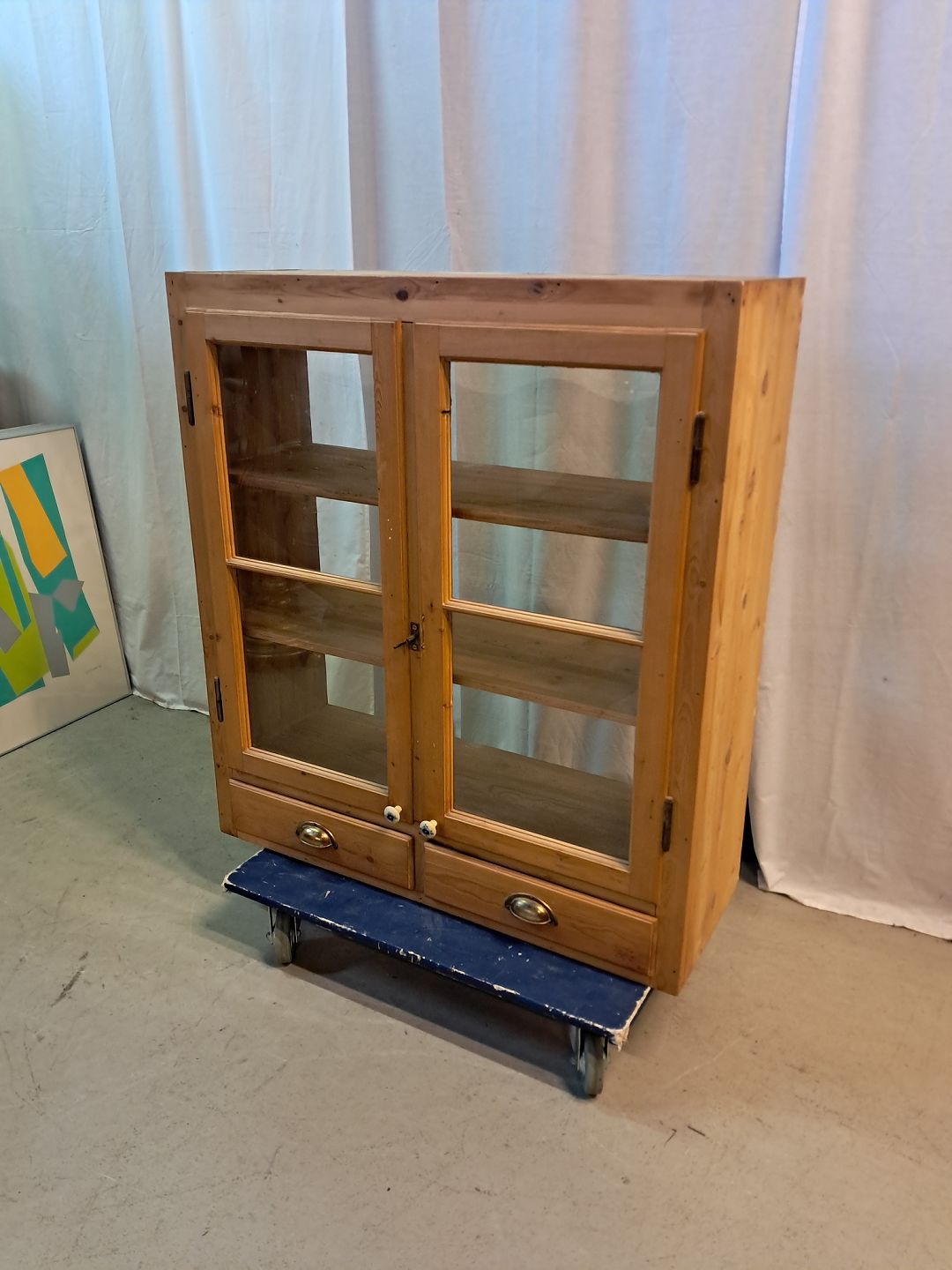 Gammelt køkkenskab i massivt fyrretræ, fra 1920erne.
