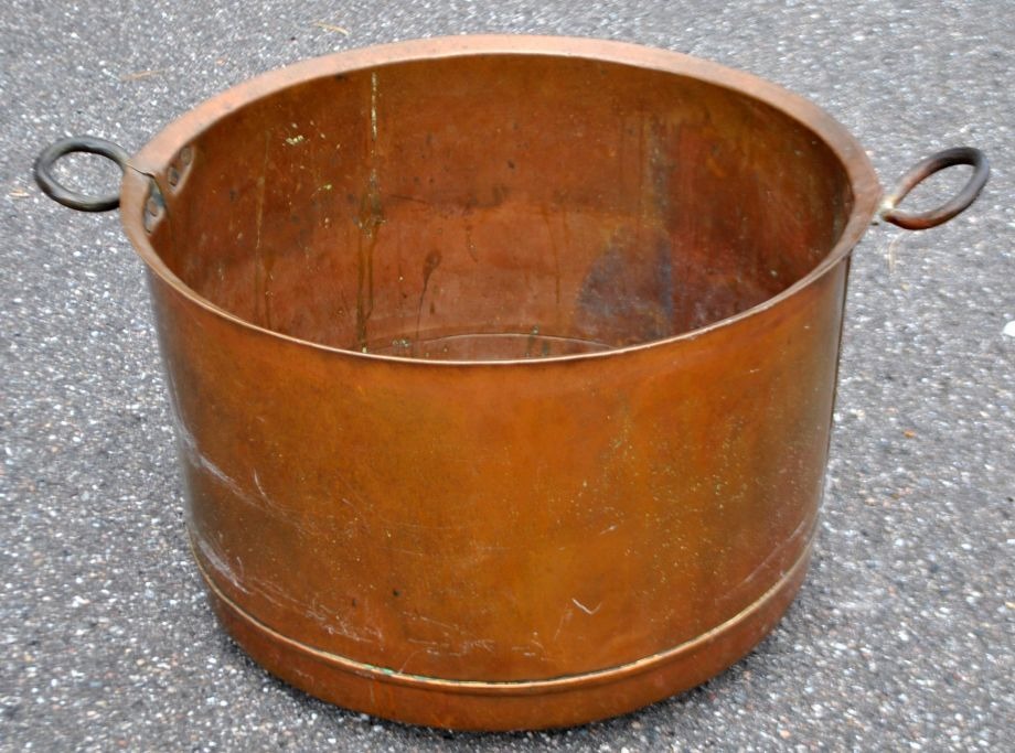 Kobber grue kedel, 1848 - 1863. Danmark. Flot stemplet. Med to hanke. H.: 37 cm. Dia.: 53 cm.