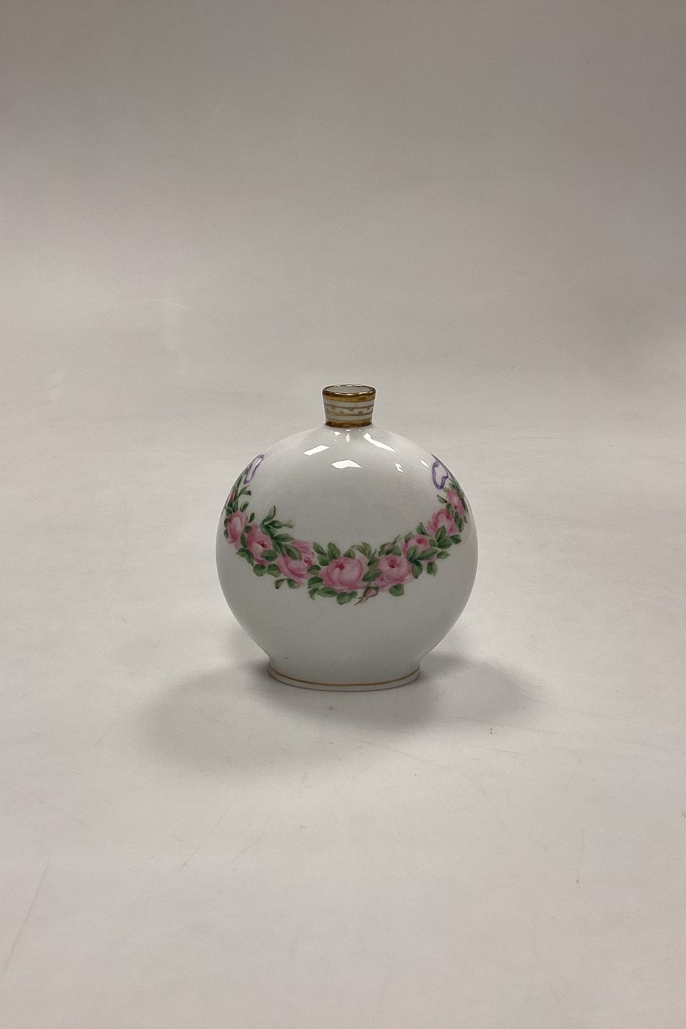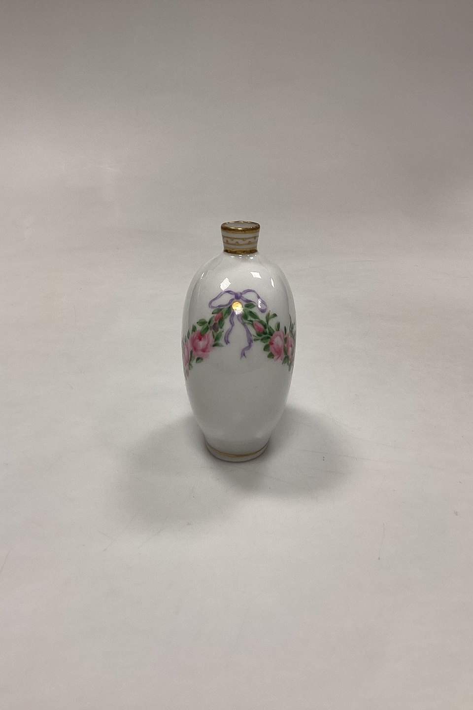 Royal Copenhagen Privatmalet Vase. Motiv med lyserød rosenguirlande. Indskrift i bunden: Juleaften 1906, GS. Måler 10 cm / 3,93 in.