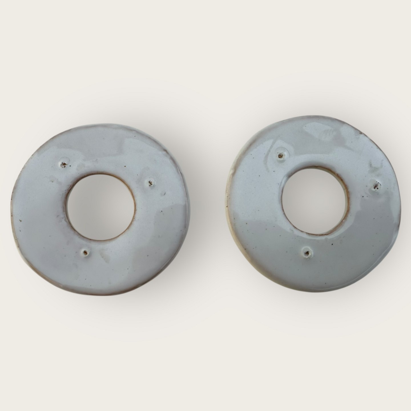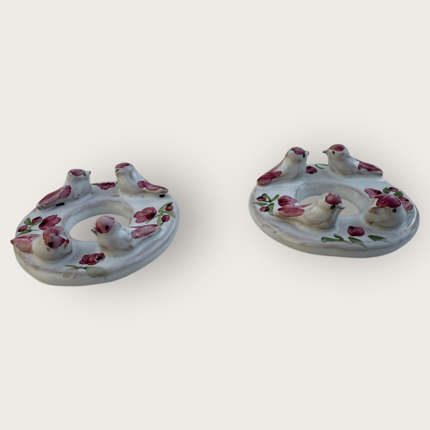 Torben Keramik, Et sæt lysmanchetter med røde fugle, diameter 6cm, fin stand