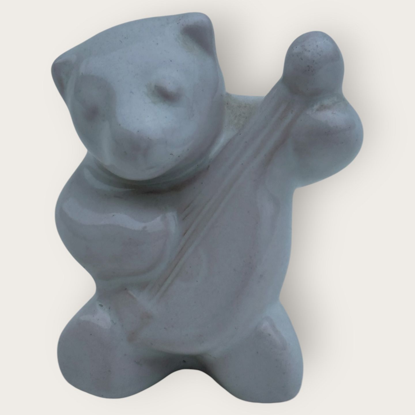 Bornholmsk keramik, Hjorth, Bjørne orkester, guitar / mandolin, bjørn med hvid glasur, ca. 6,5x5cm *Pæn stand*