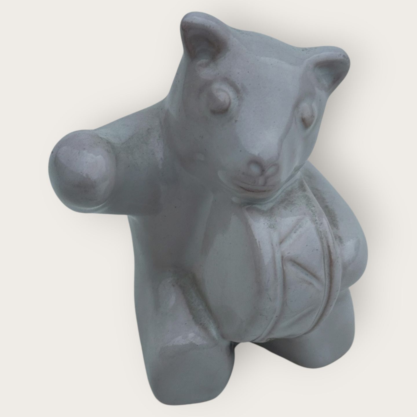 | Bornholmsk keramik, Hjorth, Bjørne orkester, Tromme, bjørn med hvid glasur, ca. 6,5x5,5cm *Pæn stand*