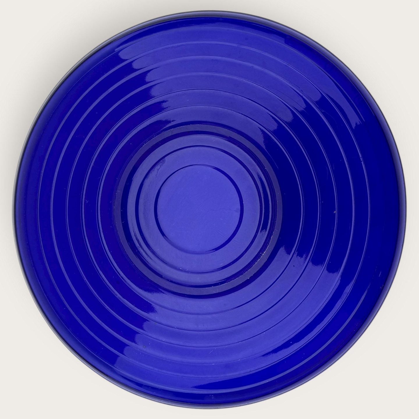 Holmegaard, Broksø, Presset glas, Blåt fad 28cm i diameter, design Jacob E. bang *Pæn stand*