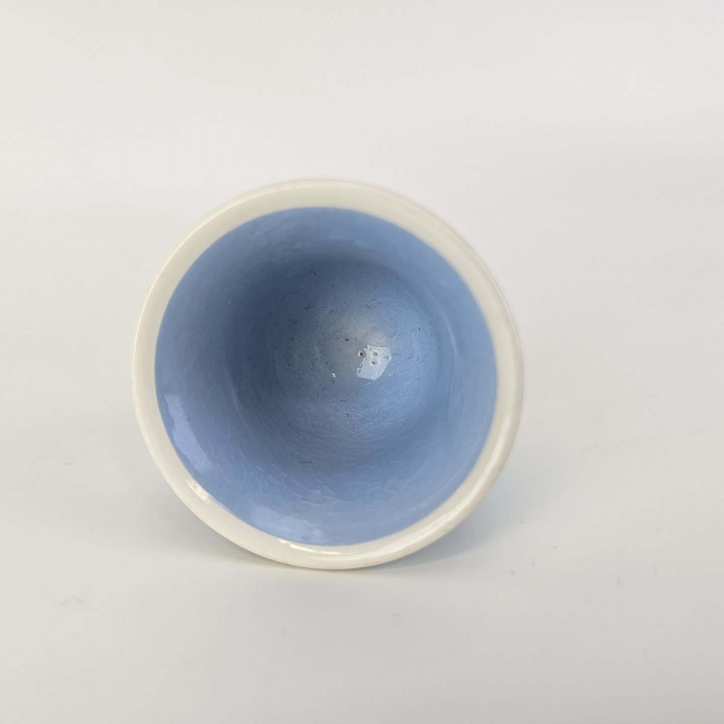 Fremstår med krakeleringer i glasuren og nister i bunden