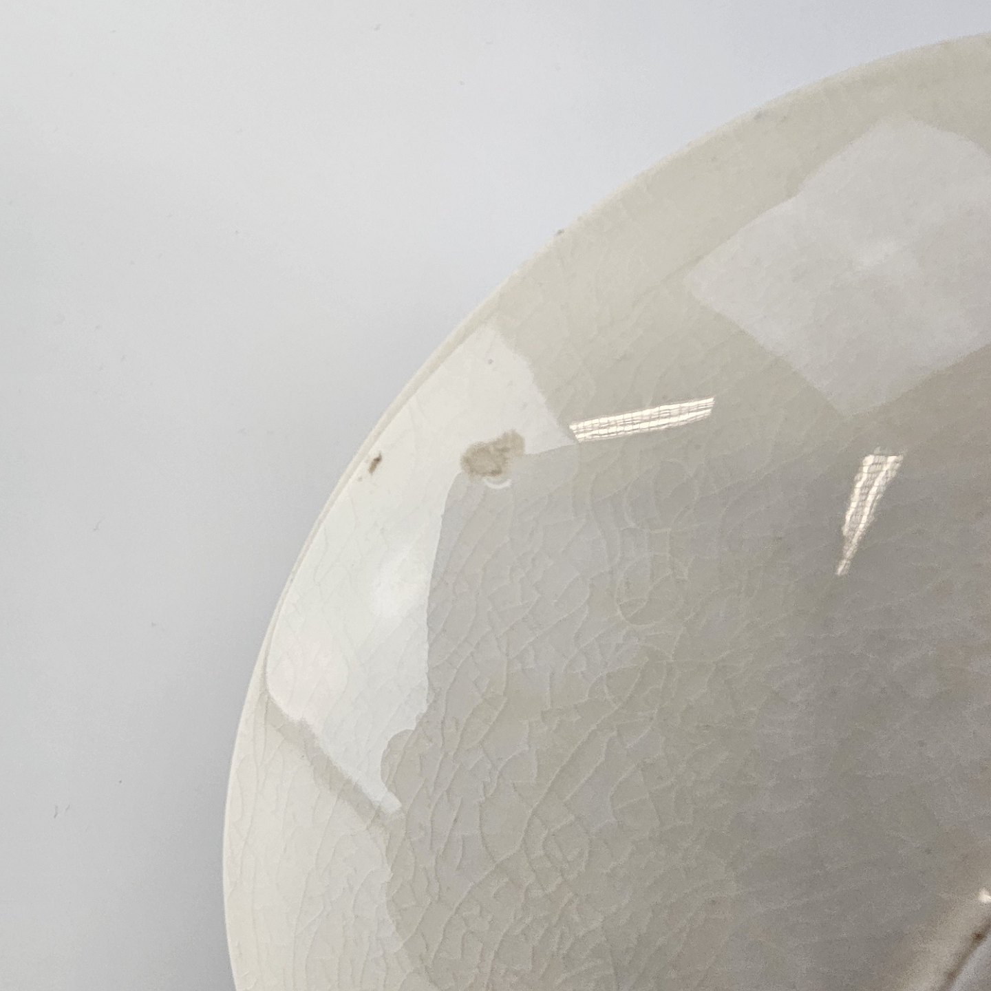 Fremstår med krakeleringer i glasuren og reparation af en overfladisk revne i låget