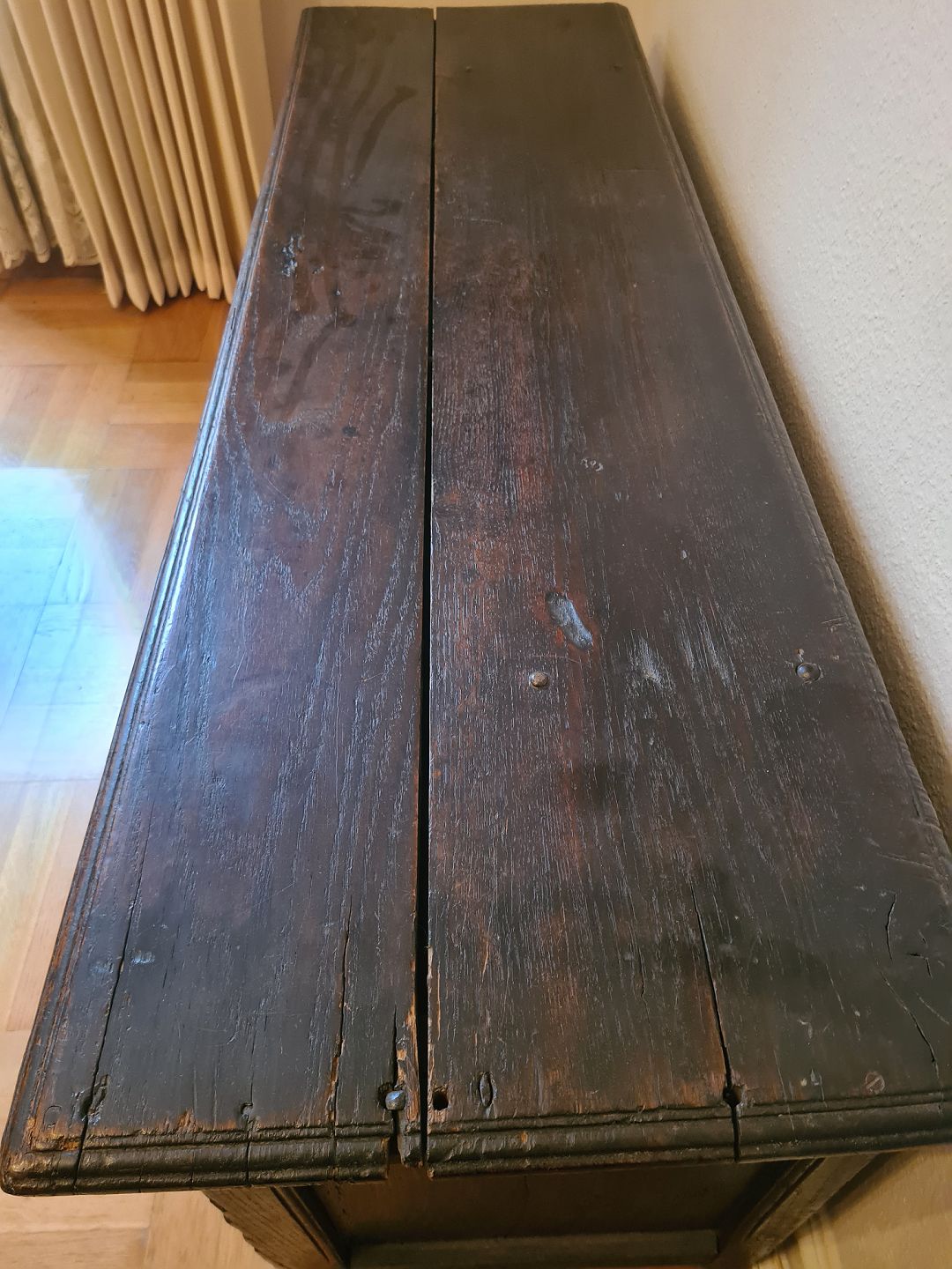 Brudekiste fra 1800 tallet i eg. Fremstår god, robust og ganske pæn for alderen.
