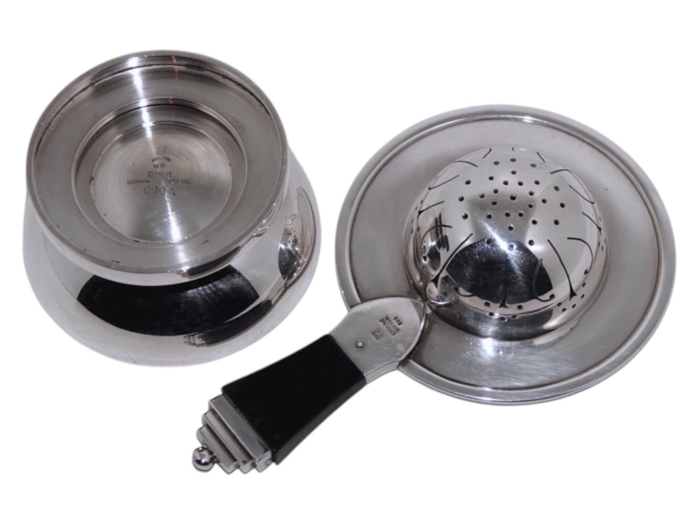 Georg Jensen sterling sølv og ibenholt, Pyramide tesi med holder.