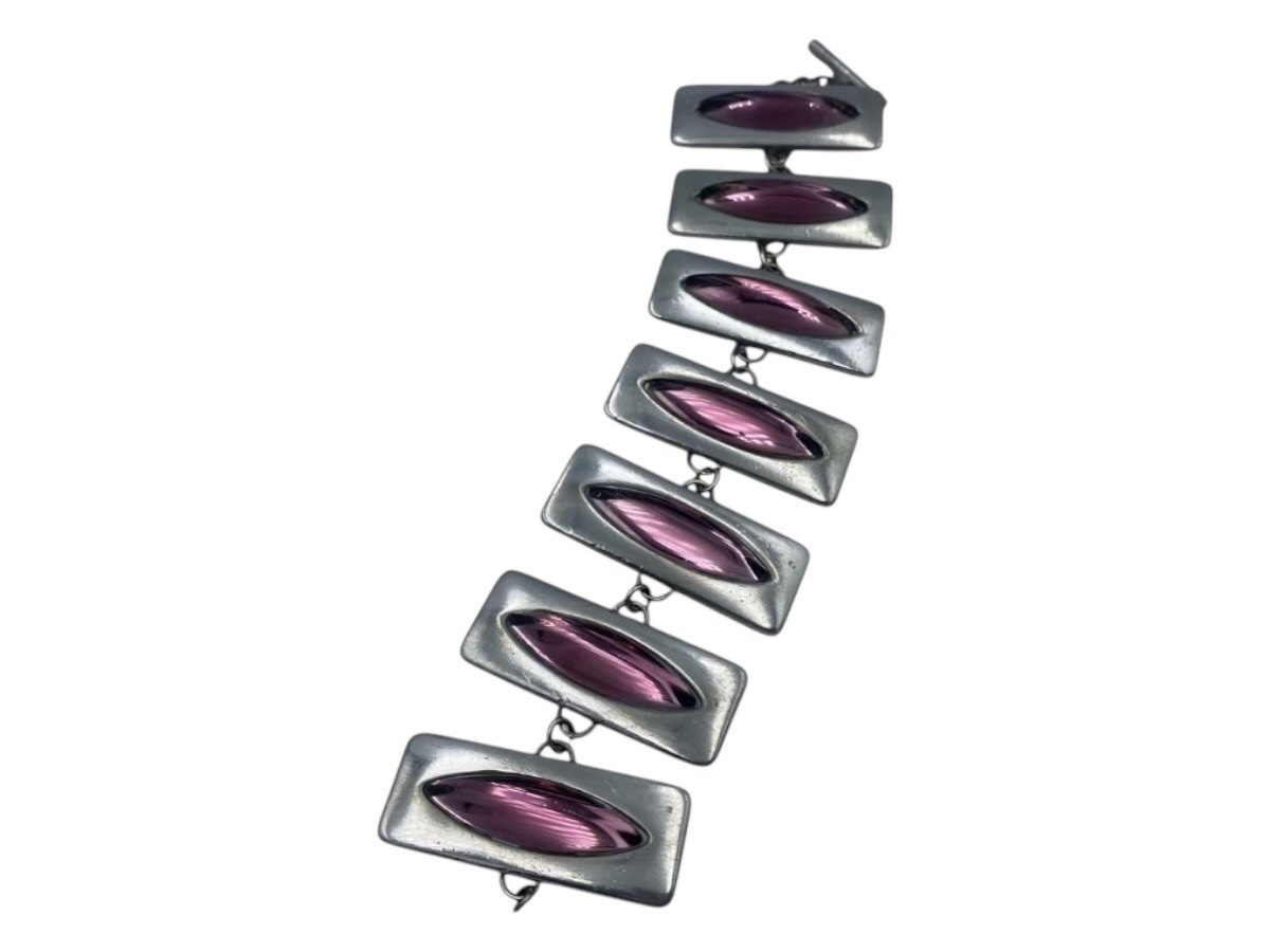 Jørgen Jensen Tin, meget bredt armbånd med lilla glassten.