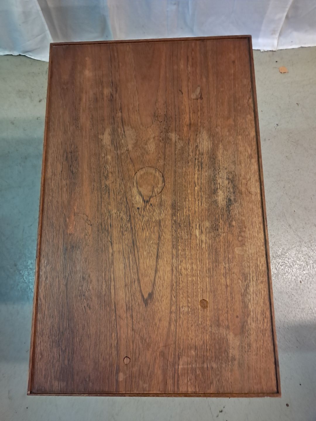 Bord i metal og fineret teaktræ, fra 1960erne.