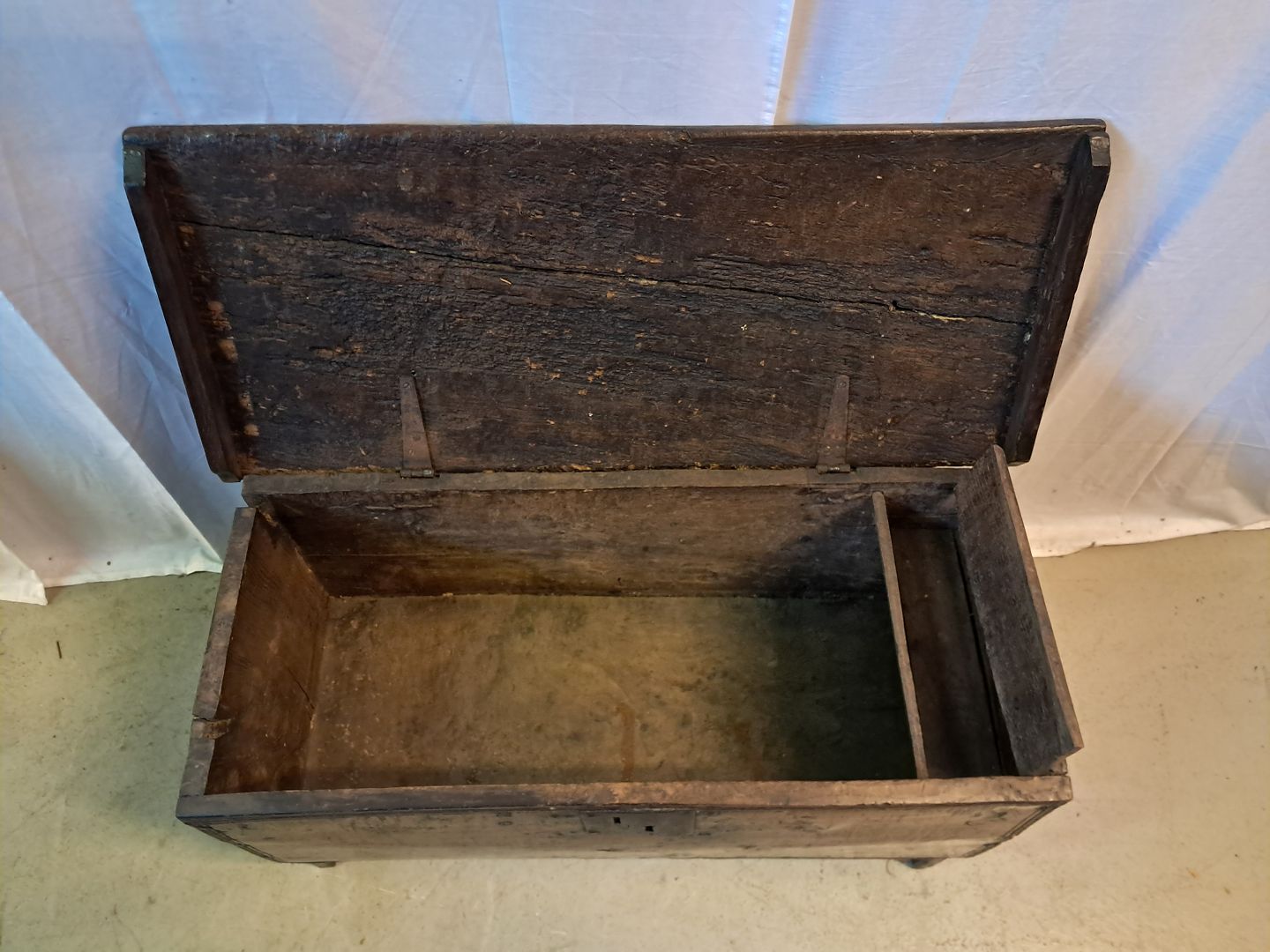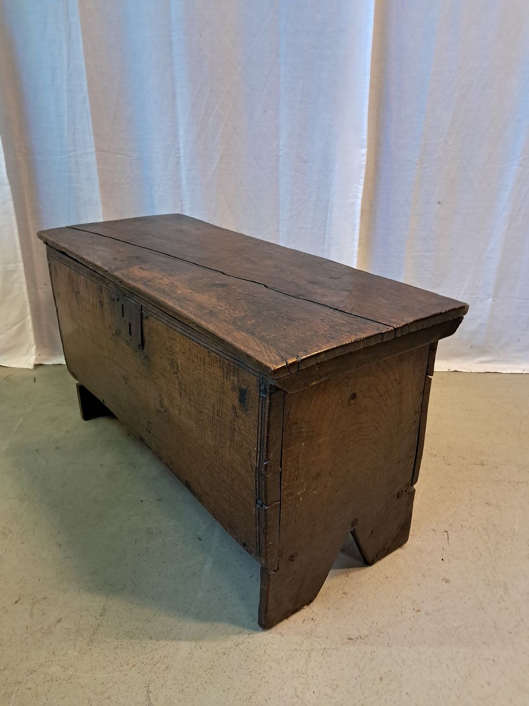 Kiste i massivt egetræ, fra 1850erne.