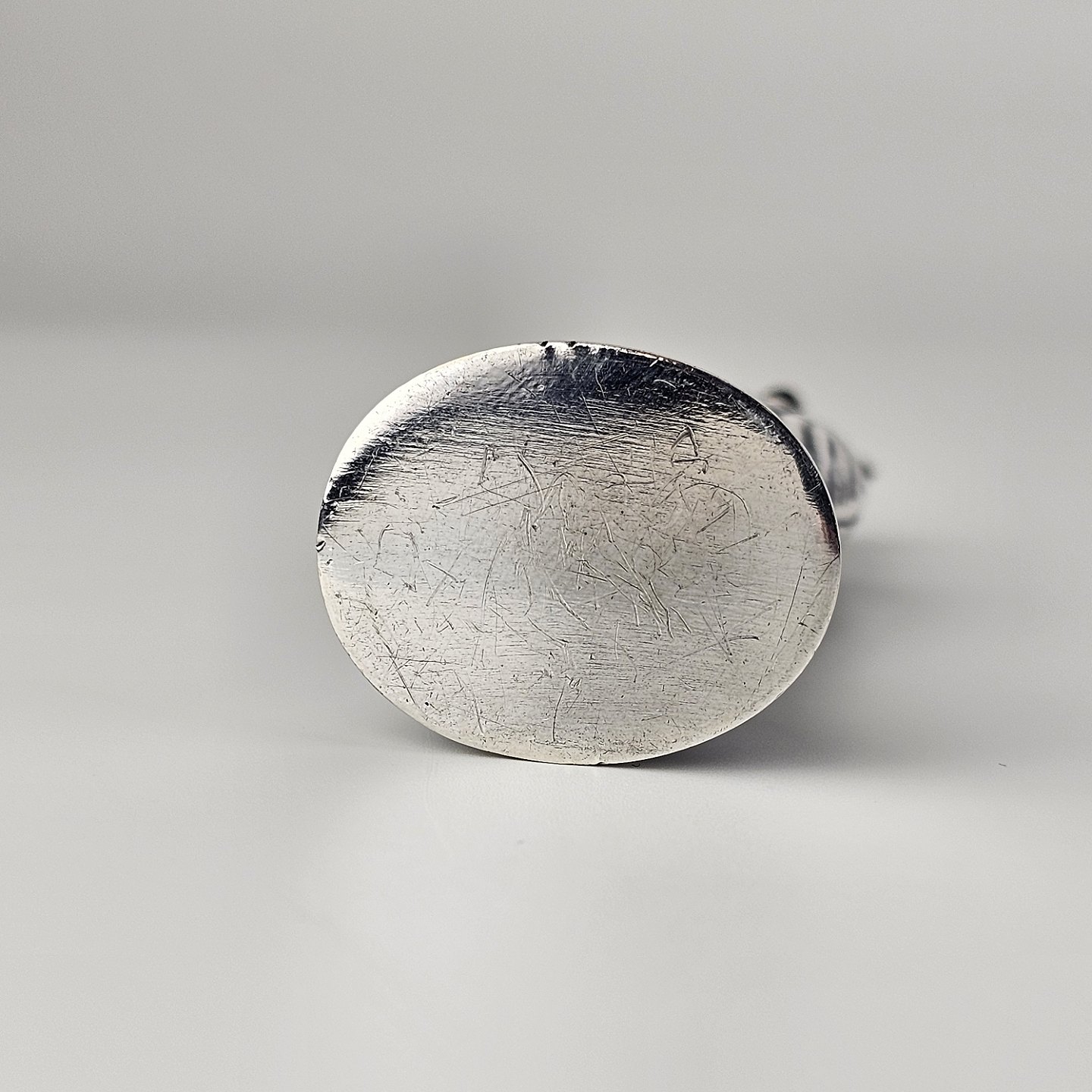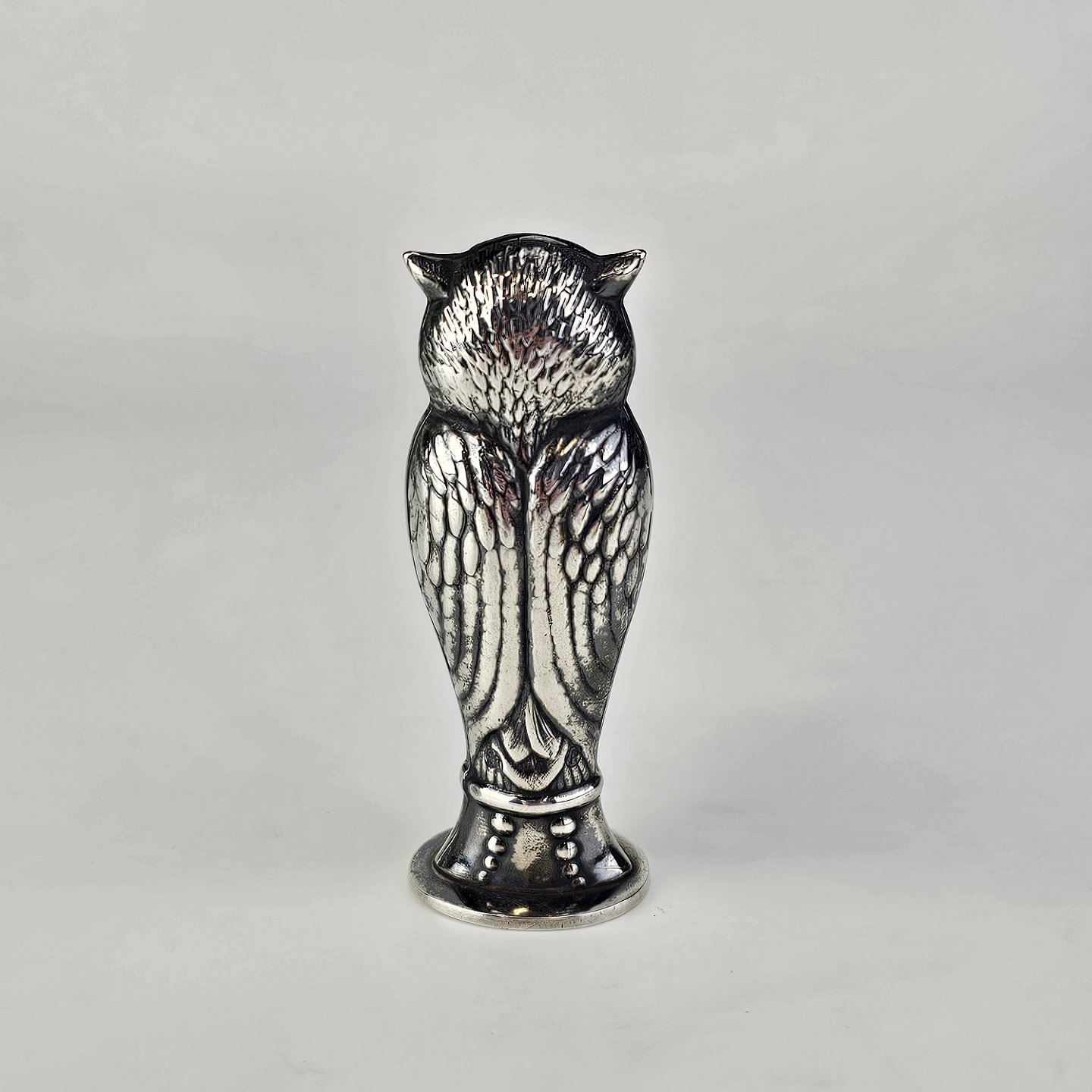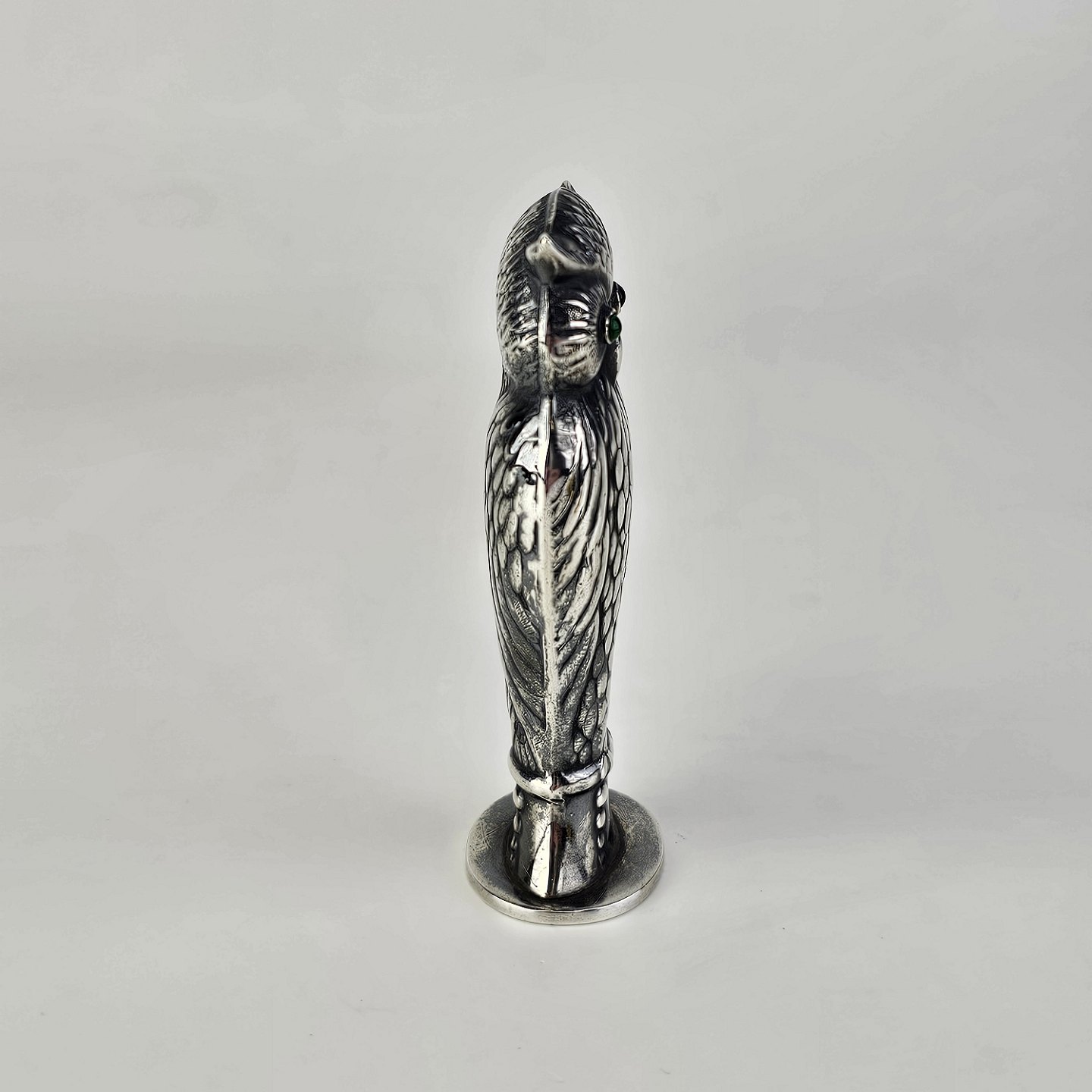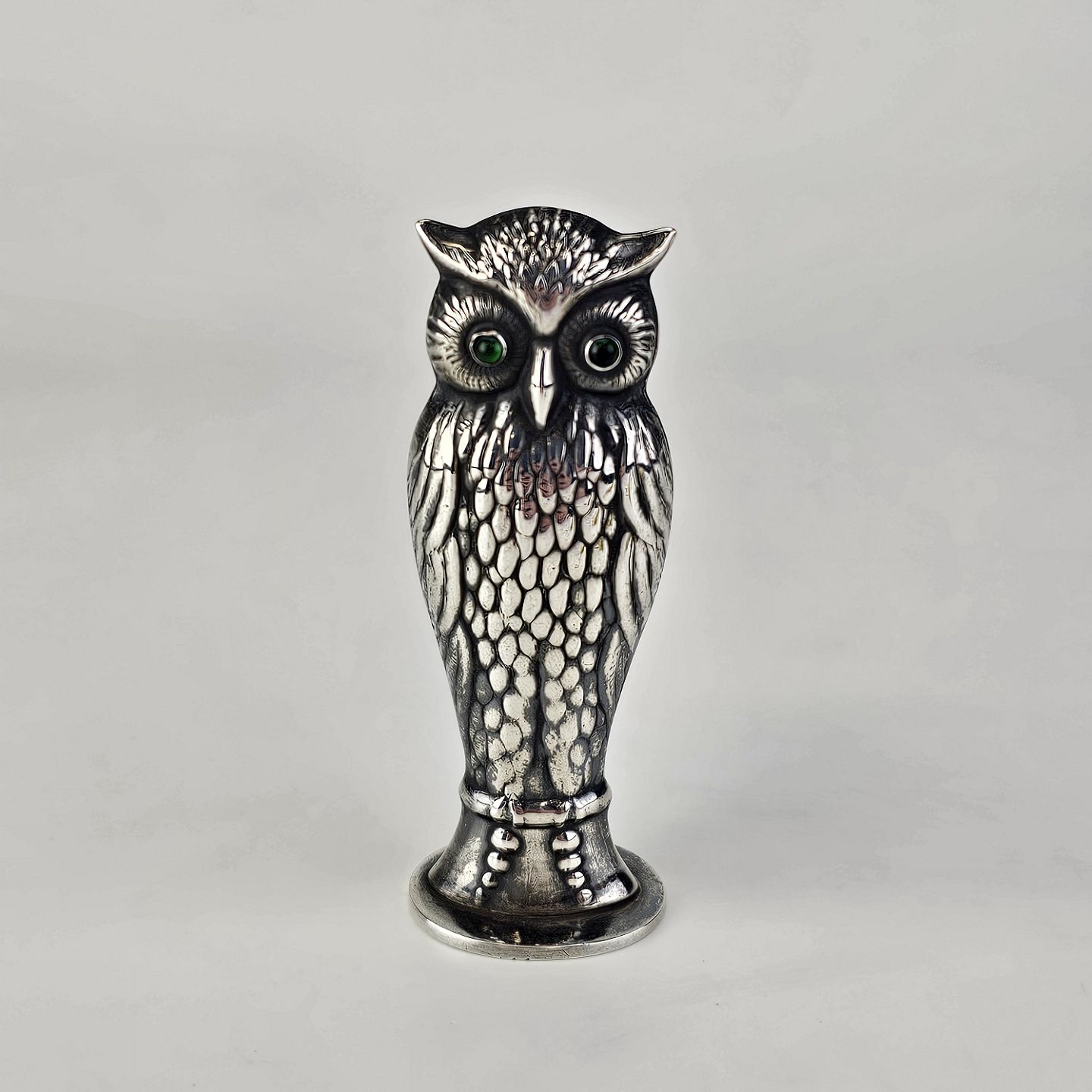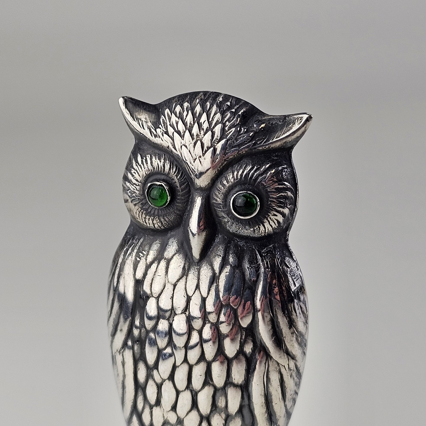 Segl i sølv med form som en ugle med øjne af to forskelligt farvede sten