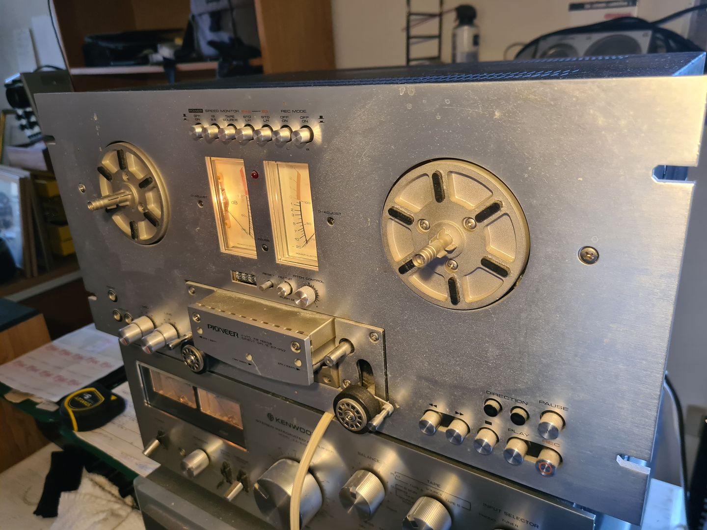 Spolebåndoptager fra Pioneer model RT-707. Sælges til reperation eller reservedele. Tænder fint op, men play funktion går i stå nærmest med det samme når der er spoler på. Kører lidt længere uden spoler på. Spolefunktionerne kører ligeledes lidt længere inden de stopper.