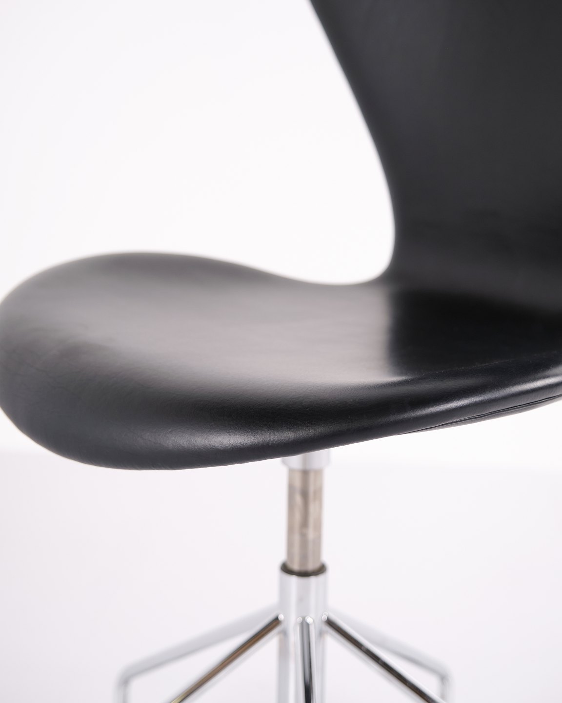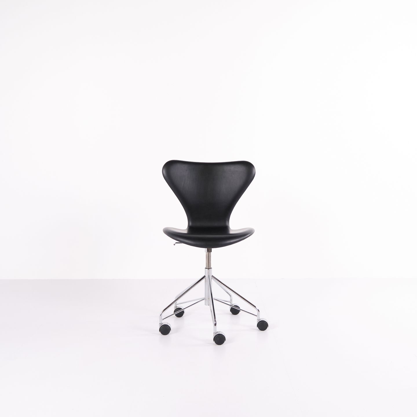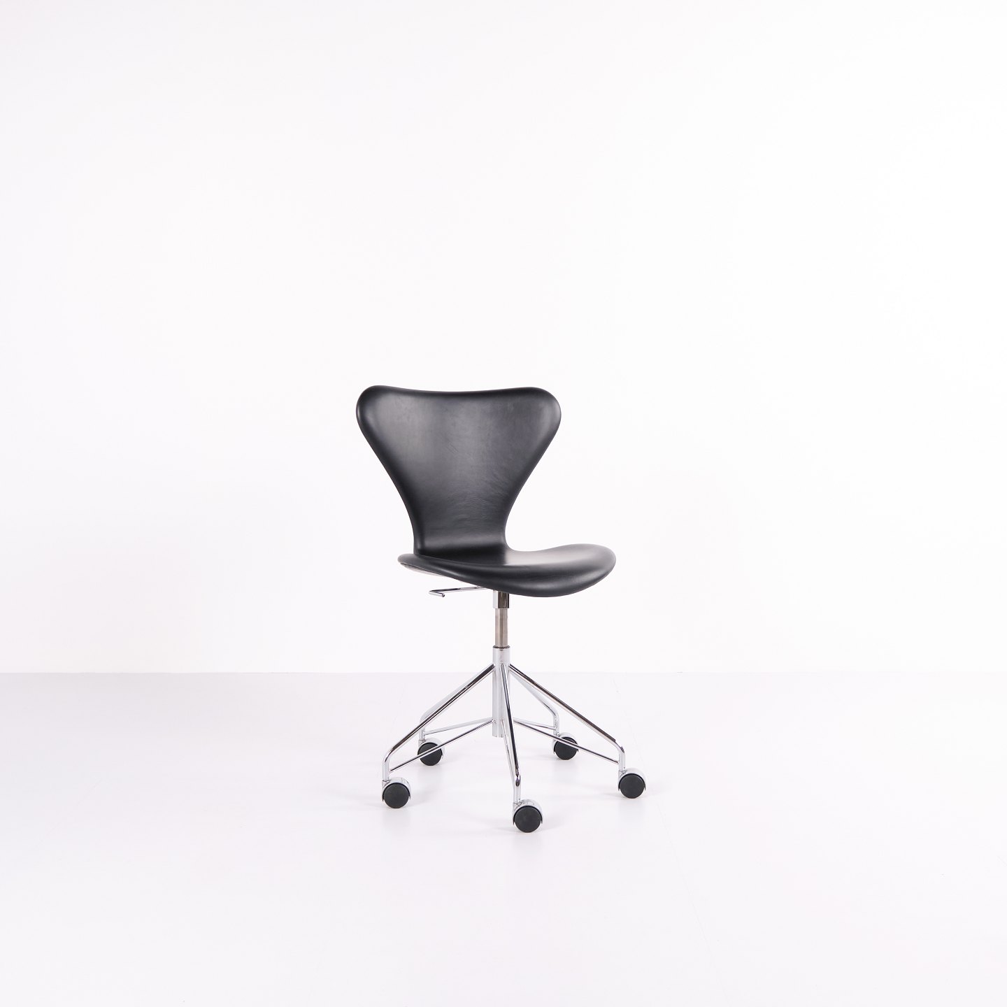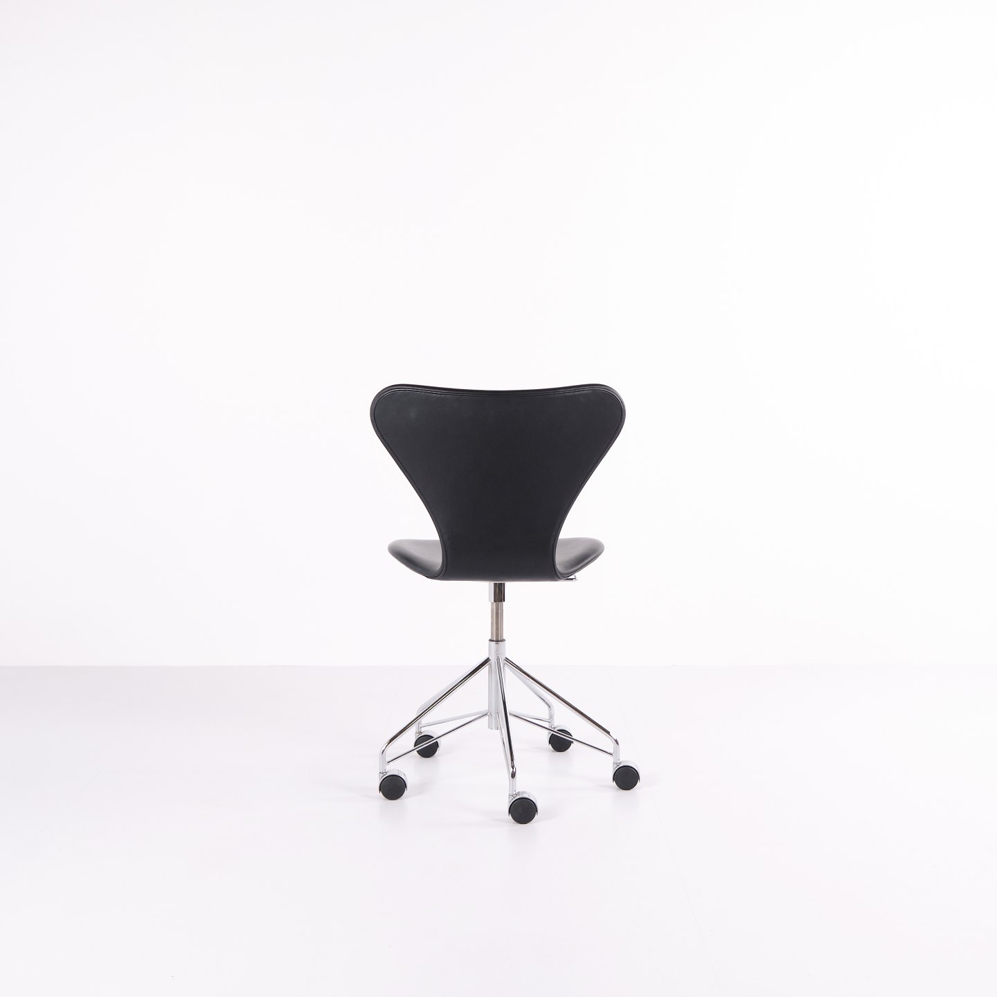 Syver Kontorstol - Model 3117 - Sortlæder - Drejefunktion - Arne Jacobsen - Fritz Hansen