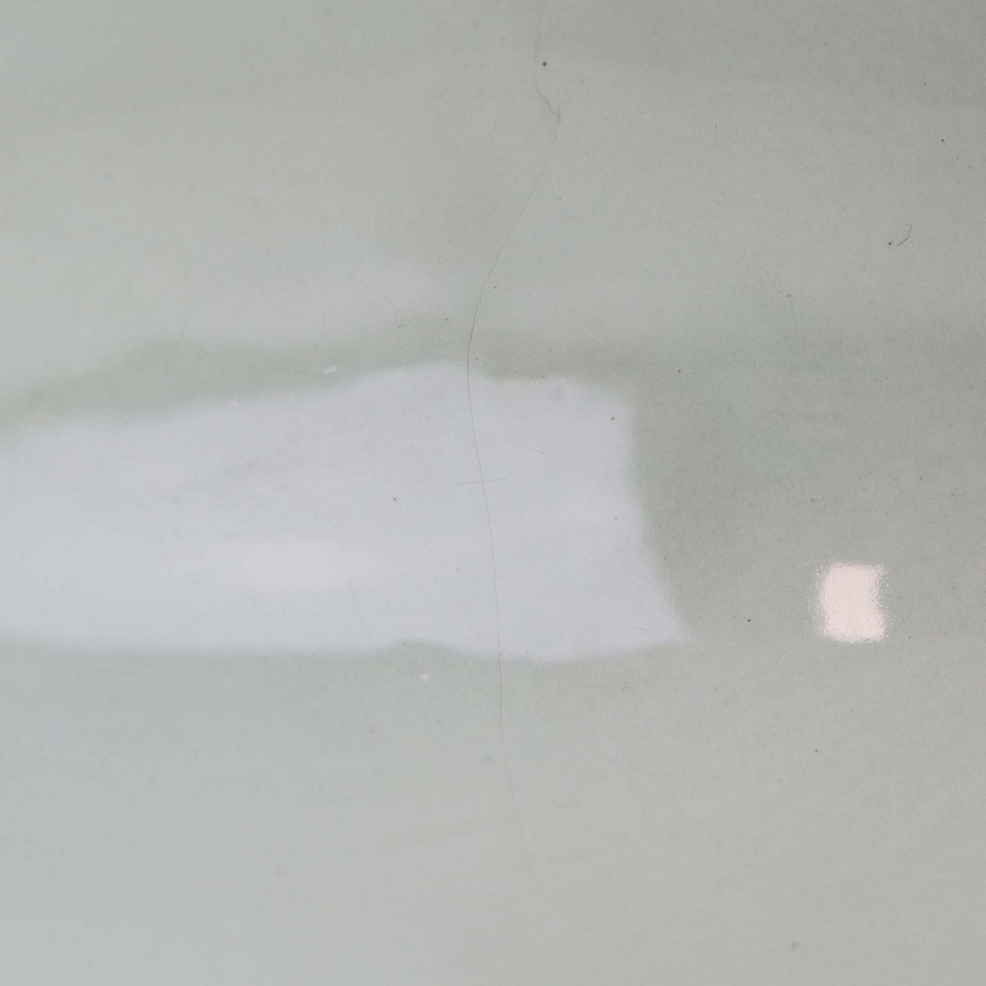 Fremstår med mindre ridse i glasuren i bunden samt brugsspor ved topkanten.