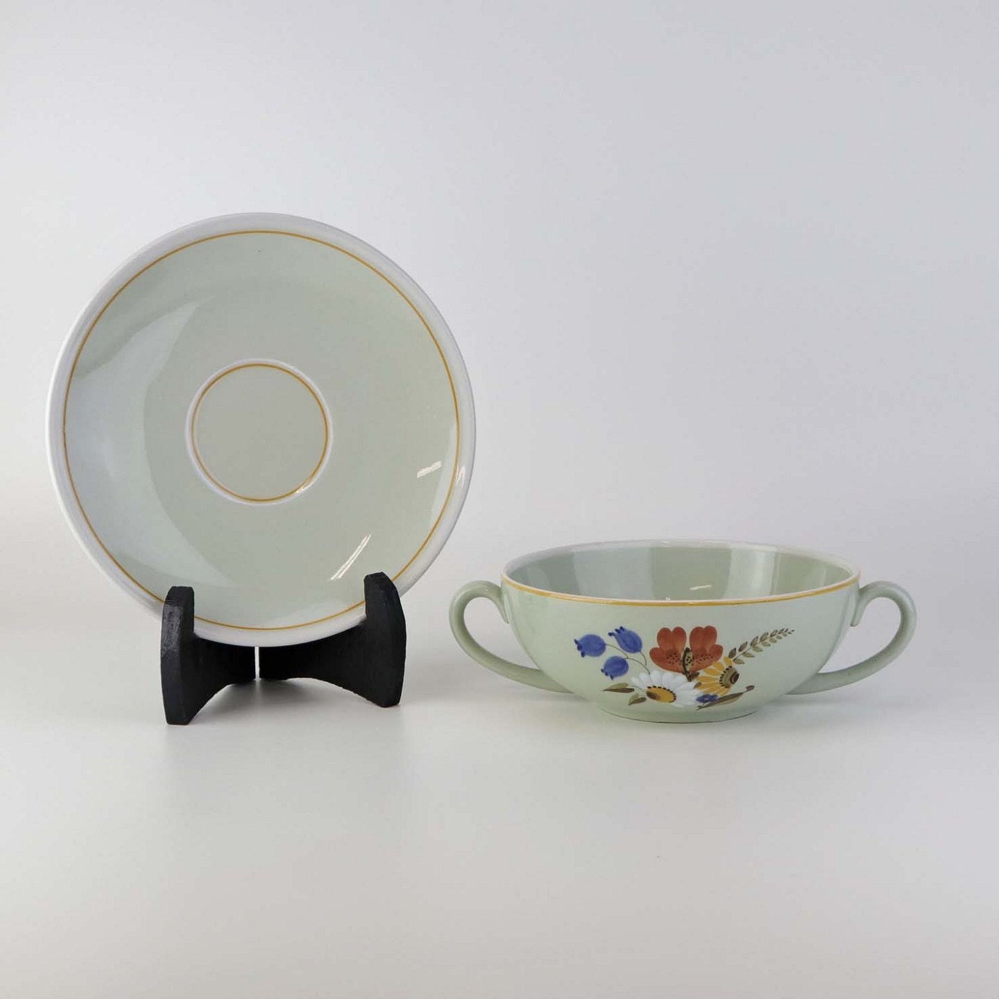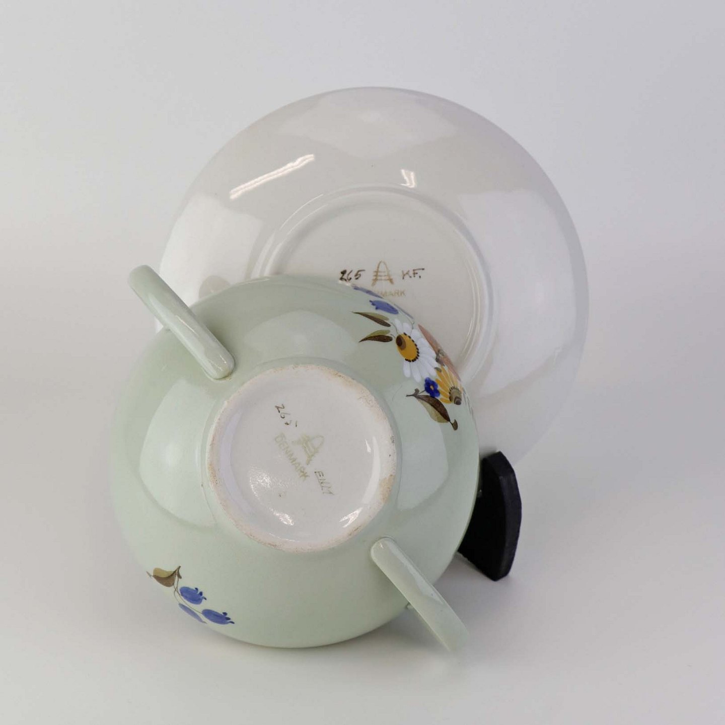 Suppekop med underkop i fajance fra stellet Frederiksberg. Nr. 265