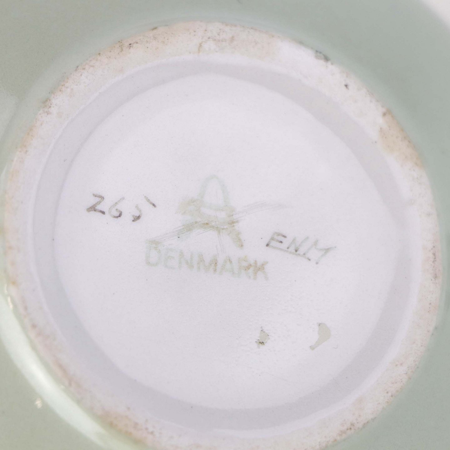 Fremstår med mindre ridse i glasuren, ujævnhed i glasuren på indersiden samt brugsspor på topkanten.